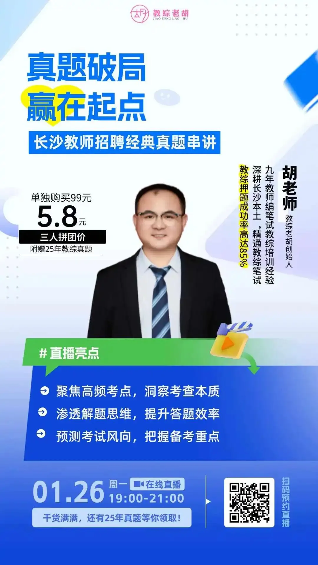 那你就一定要来学胡老师的教综全程护航线上直播营!