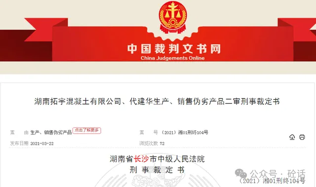 法院还认定,作为公司董事长和实验室主任,代建华和刘伟属于“明知故犯”,明知所使用的原材料不合格,仍掺入混凝土生产原材料中生产混凝土产品,以次充好。