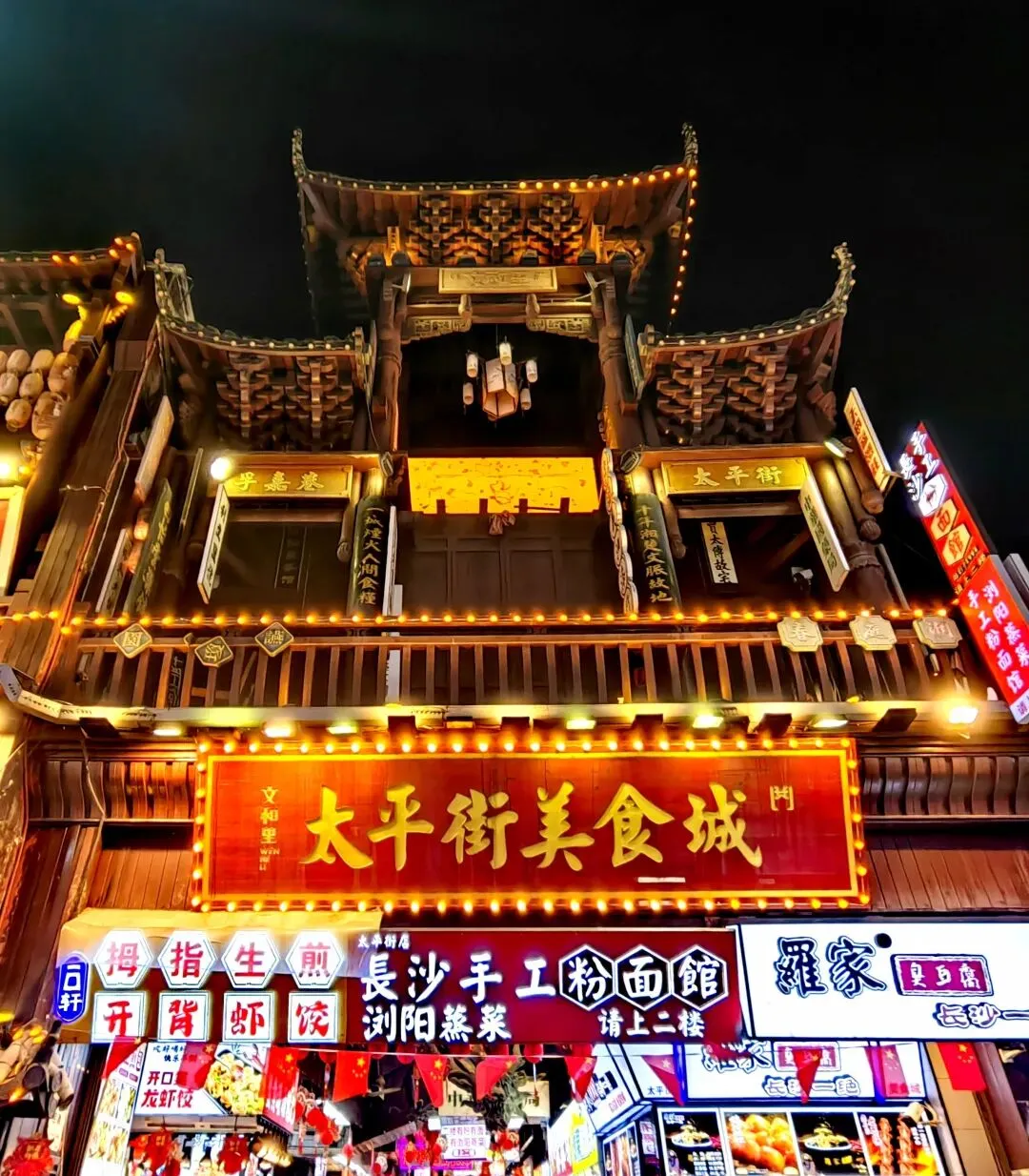 漫步老街夜市,流光溢彩的灯光映衬着纷呈异彩的店招,琳琅满目的摊位店铺,熙熙攘攘的人流,小吃美食的特色风味,无不撩动你的乐趣,勾起你的味蕾,激发你从内心发出的惊喜、惊叹与惊艳。在这里,你看到的不仅仅是一道道靓丽的风景,更是长沙这座古老的城市历史文化与风土人情最基本的生活底色,最让人流连忘返的城市缩影。
