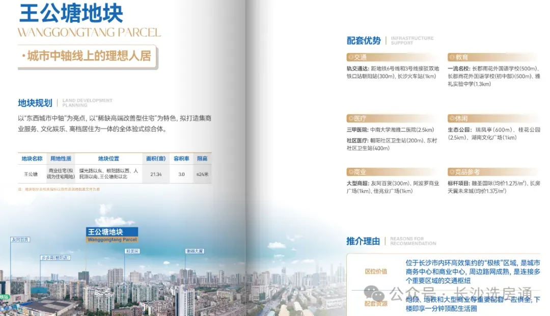 从区位来看,王公塘地块位于雨花中心板块,地理位置优越。地块距地铁3、6号线交汇的朝阳村站仅约300米,出行便捷。邻近曙光798文化产业园,周边分布长郡雨花外国语学校、雅礼实验中学等优质教育资源,以及友阿百货、阿波罗商业广场等商业配套,整体配套十分丰富。须按相关文件落实装配式建筑、绿色建造和教育等配套要求;保证该项目建筑前区满足相邻城市规划道路的协同设计要求,并无条件在建筑前区承担城市规划道路的人行道功能,以及承担沿道路公共附属设施放置和后续的相关建设维护管理协调工作;实现“交房即交证”;应对住宅阳台统一封闭设计等。地块将如何开发?打造怎样的人居产品?长沙选房通将持续关注!特别说明:针对近期用户反馈有人冒充选房通工作人员从事房产买卖现象,我司特别声明:长沙选房通是房产信息发布平台,未开展房产买卖业务及带看服务。如有人冒充我司工作人员邀约、带看或收取任何费用,欢迎广大用户向我司举报,我司将保留追究其法律责任的权利。