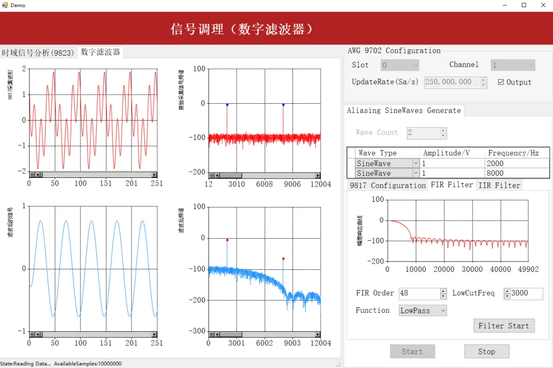 简仪科技开发的锐视测控程序开发工具包SeeSharpTools,其中包含一系列类库(Class Library),提供方便易用的信号生成、数字滤波,DSP分析和显示功能,帮助用户在锐视测控平台下快速搭建测试测量解决方案。现场演示数字滤波器的信号调理效果。