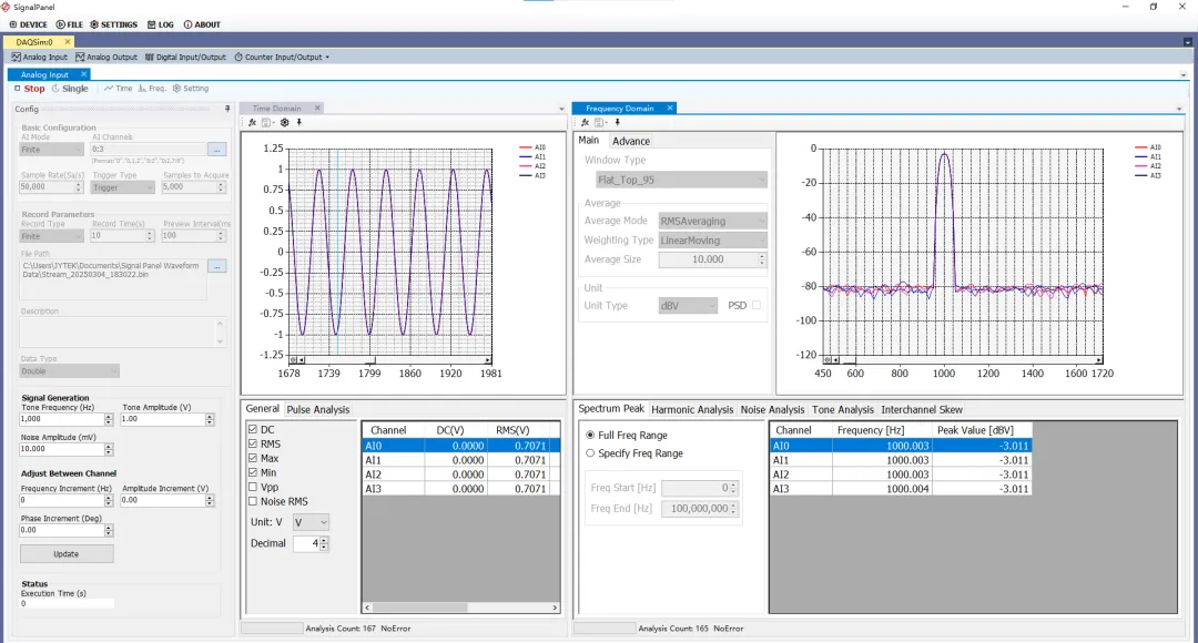 简仪科技推出的简单易用的模块仪器操作软件,无需编程即可轻松上手。支持模块仪器的多种功能,包括模拟数据采集、模拟波形输出、数字I/O、计数器测量与输出等。软件采用多窗体结构,可同时操作和显示各项功能,方便用户进行时域和频域的波形测量与分析。此外,它还能进行动态信号分析,如THD、SNR、SINAD等,并支持数据流盘存储与回放,满足多种测试需求。现场演示SignalPanel的测量与分析功能。