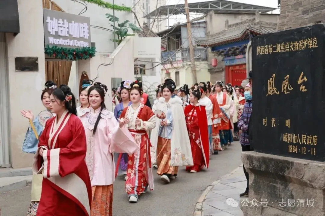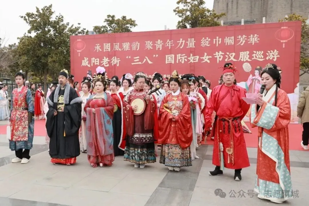 中共渭城区委社会工作部、共青团渭城区委、渭城区妇女联合会、咸阳老街文化旅游发展中心、咸阳市渭城区政协委员志愿者服务队联合主办,渭城区志愿服务联合会传统文化专业委员会、应急救援专业委员会承办的“春暖古渡·芳华渭城”汉服国风主题活动,于3月8日在咸阳老街惊艳启幕。春风十里,不如渭城有你;古韵千年,恰逢巾帼芳华。在第116个“三八”国际妇女节到来之际,150名志愿者与工作人员全程参与,从清晨8点的晨光熹微,到午后2点的华服巡游,用一场沉浸式国风盛宴,让千年古渡焕发新生,让巾帼之美与传统文化交相辉映。