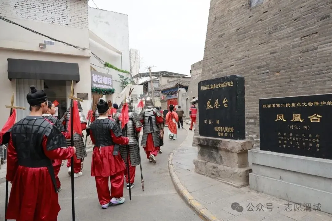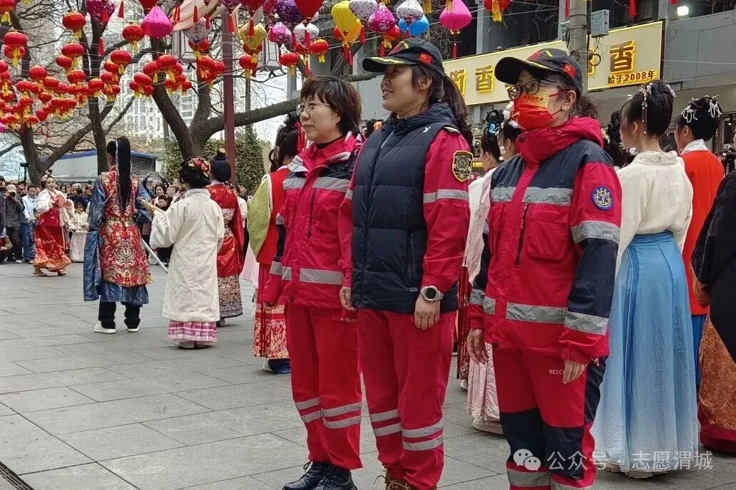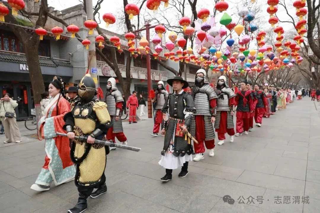 志愿者们化身成为流动的风景,与游客亲切互动、合影留念。他们的一颦一笑,都定格成了渭城老街最动人的画面。而由渭城区志愿服务联合会志愿者组成的“铠甲护卫队”,则全程为巡游队伍保驾护航,他们威武的身姿与汉服的柔美形成了鲜明对比,成为了活动中一道独特的风景线。