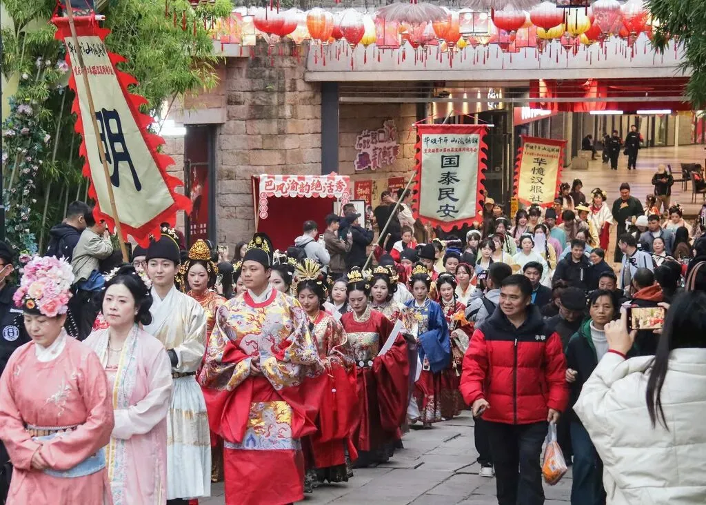 3月7日,重庆磁器口第四届汉服同袍年会盛大启幕,数百位汉服爱好者沿着磁器口古镇进行盛大巡游,开展国风才艺快闪活动,吸引不少游客驻足观看。