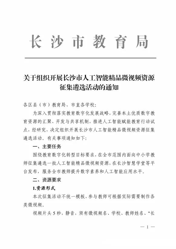 >湖南省长沙市关于组织开展人工智能精品微课资源征集遴选活动的通知