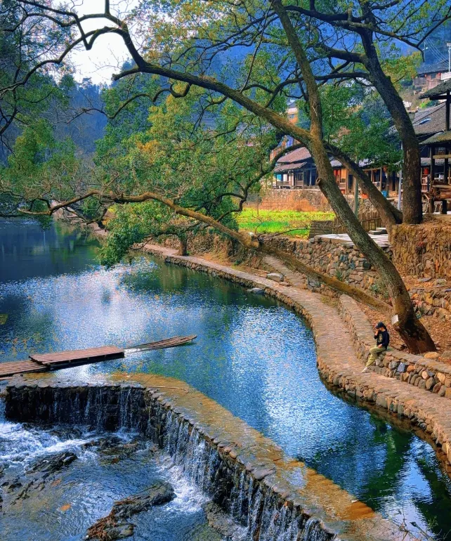 一盏黑茶的陈香,连着一条竹排的吱呀,被晚风轻轻揉在了一起。