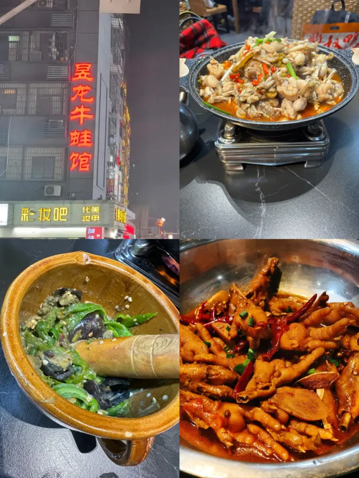 推荐理由: 在长沙,想吃牛蛙,本地人大概率会把你带来这里。开了十几年的老店,就藏在解放西后面的巷子里,招牌大得生怕你错过。招牌大盆牛蛙端上来那刻,你就知道什么叫“名不虚传”——满满一盆,蛙肉紧实饱满,底下垫着清脆的萝卜片。牛蛙越煮越辣,但越辣越想吃,最后连萝卜都吸饱了汤汁的精华,软烂入味。不能吃辣的朋友请备好豆奶,这辣度可是认真的。