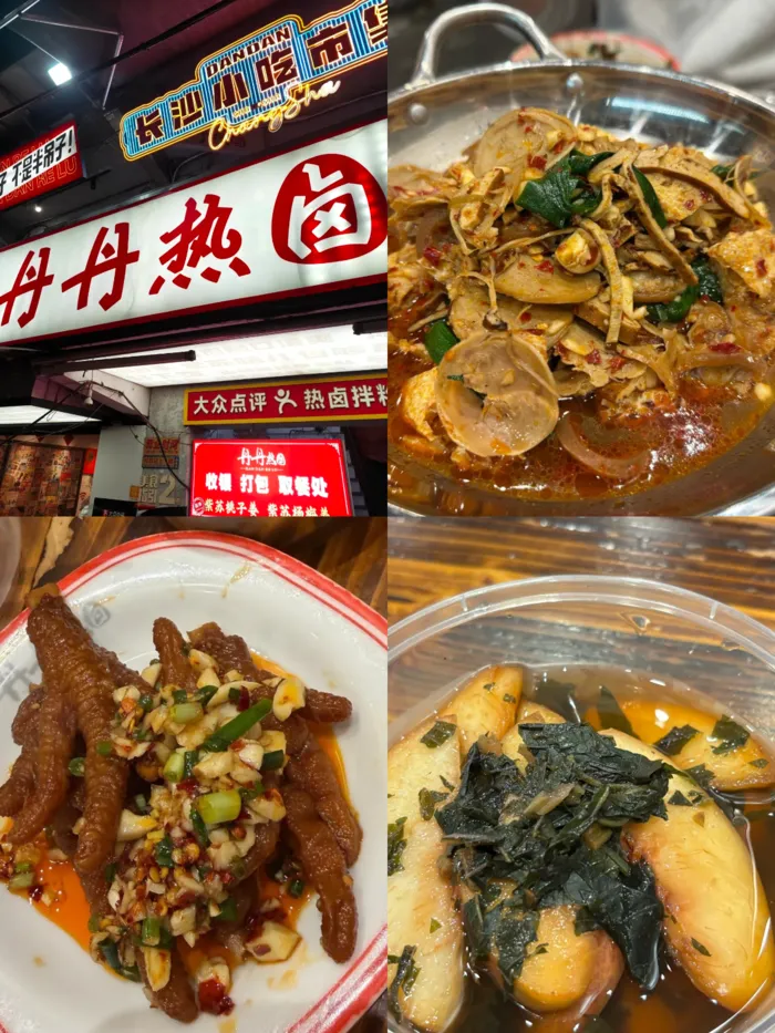 推荐理由: 冬瓜山的夜宵江湖里,丹丹热卤是绕不开的存在。开了十几年的老店,店面不大,但一到晚上就人声鼎沸。热卤四合一是招牌,牛肉、猪耳朵、捆鸡、韭菜拌在一起,卤香浓郁,口感丰富。卤鸡爪炖得软糯入味,轻轻一抿就脱骨。还有紫苏桃子姜,清甜解腻,是长沙独一份的味道。人均30就能吃撑,性价比无敌。
