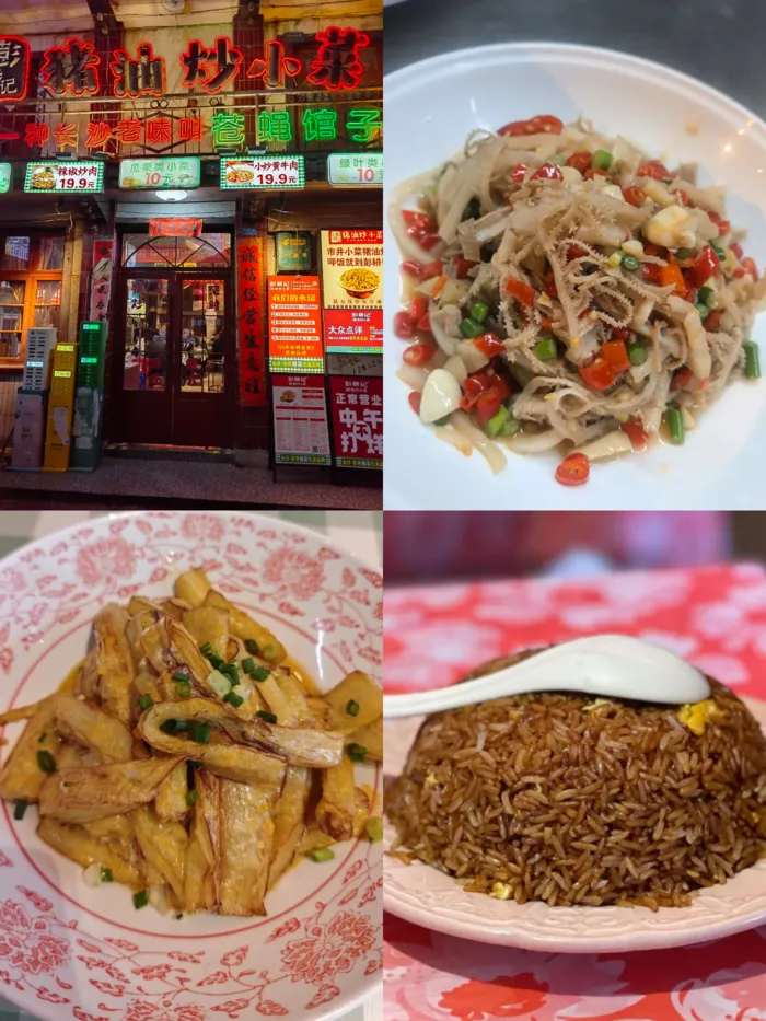 推荐理由: 走进彭耕记,就像穿越回了80年代——搪瓷碗、木筷子、八仙桌、长条凳,墙上还贴着旧海报。这里主打猪油炒菜,每一道菜都带着浓浓的猪油香。酸萝卜牛百叶清爽开胃,咸蛋黄茄子沙糯香浓,猪油炒饭更是碳水爱好者的福音,粒粒分明的米饭裹满猪油和酱油的香气,就是小时候妈妈做的味道。