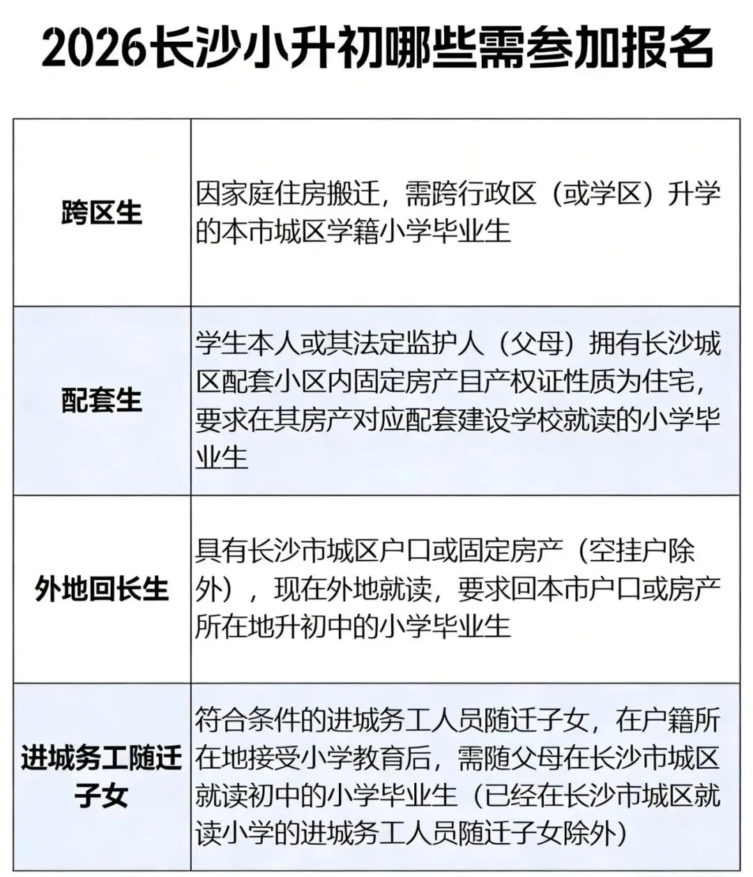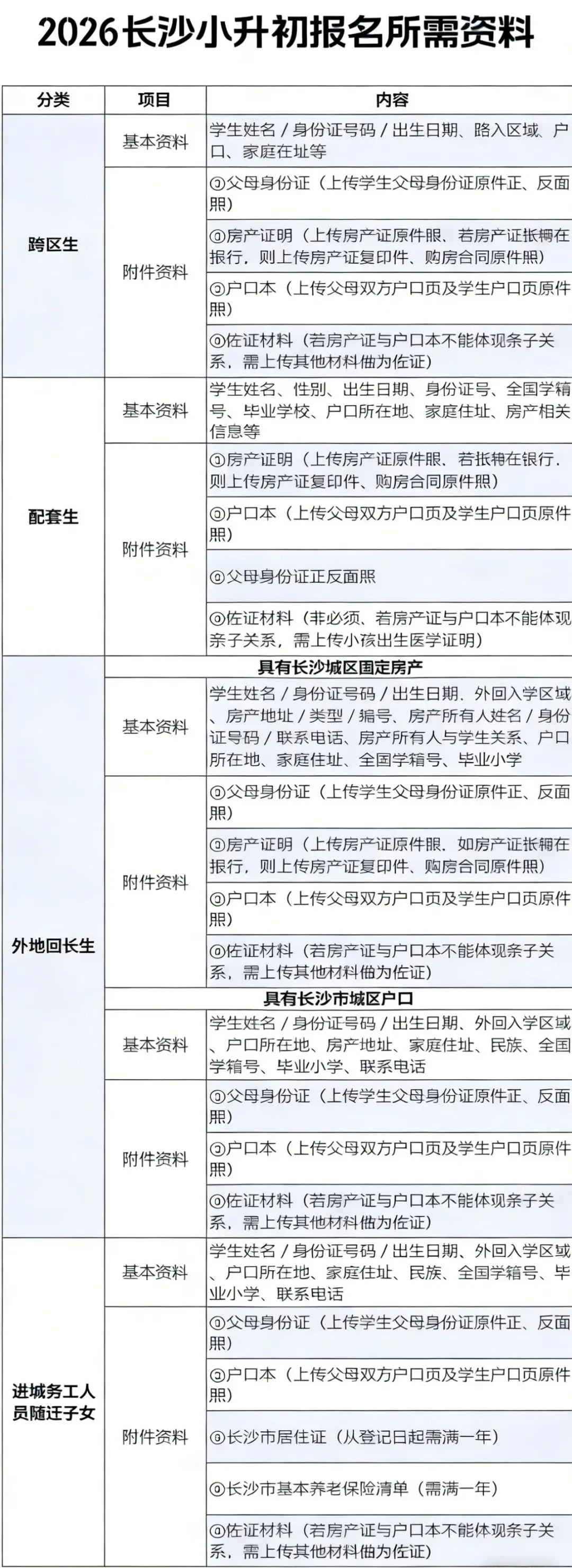 - 官方招生政策发布3 月下旬,长沙市及各区教育局将发布2026 小升初最新招生方案,明确派位规则、报名时间、学区划分、配套入学要求。