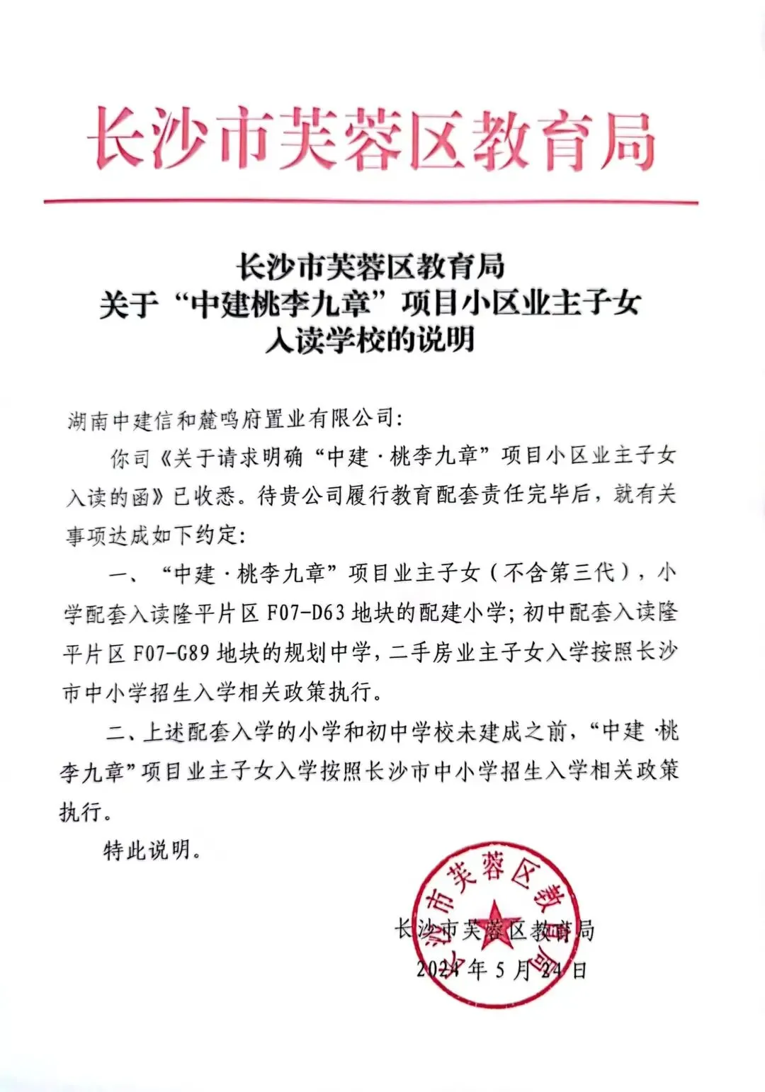 这是最稳的入学途径。中建博萃府、中建桃李九章已被明确为配套楼盘,业主子女小学升初中可直接入读隆平校区。