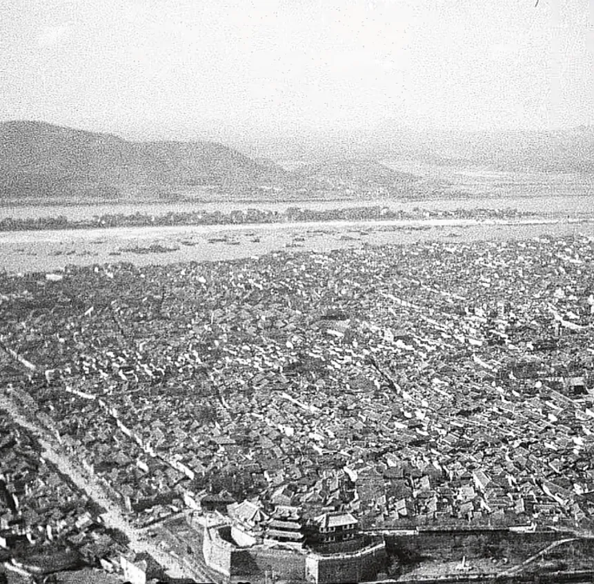 目前我们看到的天心阁,包括城墙以及配套的大部分,都是1983年复建的,仅仅只有名字和样貌和历史上天心阁有关联,因为原来的天心阁以及城墙在1938年的文夕大火中被烧毁,只留下部分城墙地基遗址,这也一直都是整个长沙的痛。