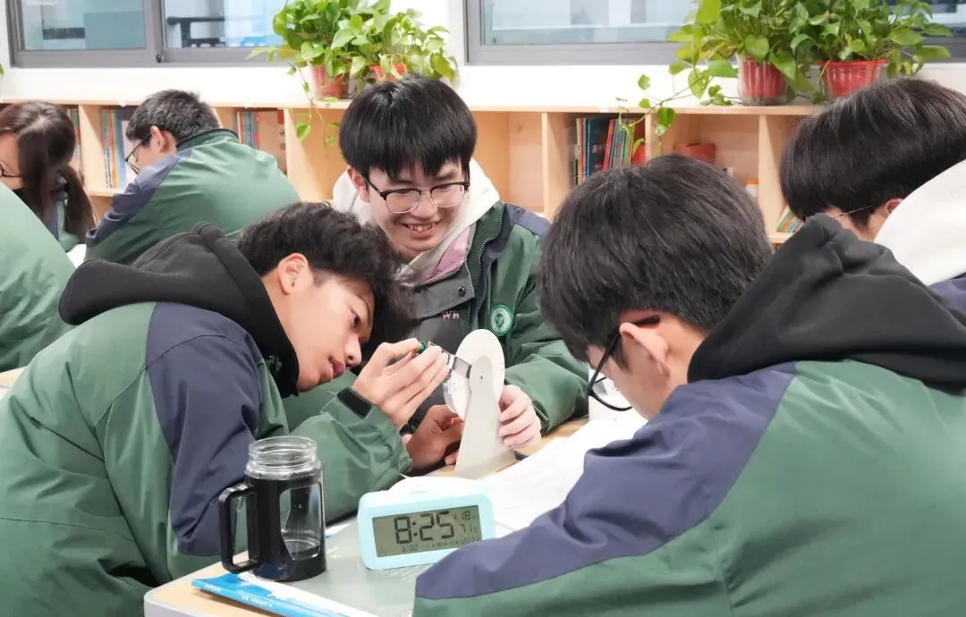 “151”高效课堂模式涵盖课前、课中、课后三个时段。第一个“1”是课前集智研备,老师在精心自备的基础上,每周全员集智研备,统一学习目标、学习流程、导学提纲、导学PPT等。“5”是课堂上的五个基本流程:老师导学、学生学习、展示质疑、点评分析、当堂检测等环节,着重培养创新思维和表达能力。同时,学校落实“课堂专注度六个零”,保证学生精力不流失,每节课都有具体收获。第二个“1”是课后限时训练,养成限时的思维模式,克服拖拉的习惯,及时巩固消化,实现能力与质量快速提升。