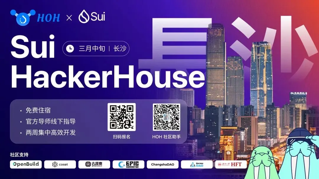 3 月,HOH 社区将开启一次 为期 14 天的沉浸式构建营 —— Sui HackerHouse 长沙站。