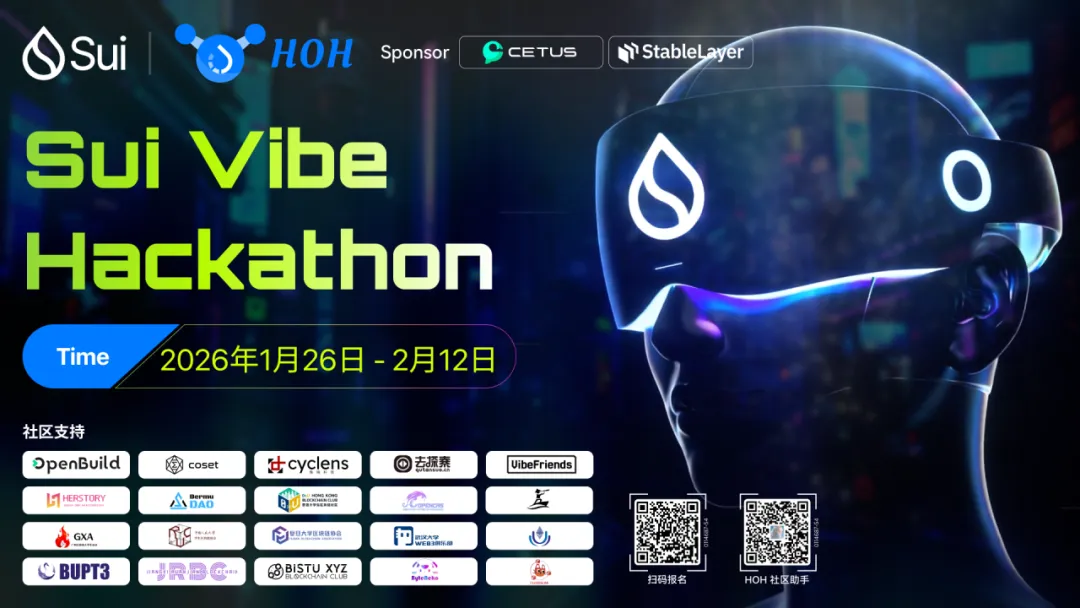 2 月,HOH 社区正式发起Sui Vibe Hackathon,邀请全球 Builder 参与一次围绕 Vibe Coding 与 Sui 生态 构建 的线上共创挑战。