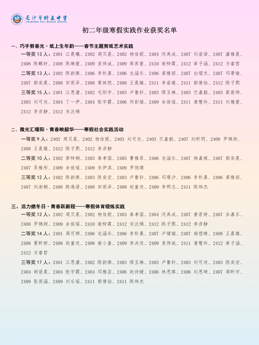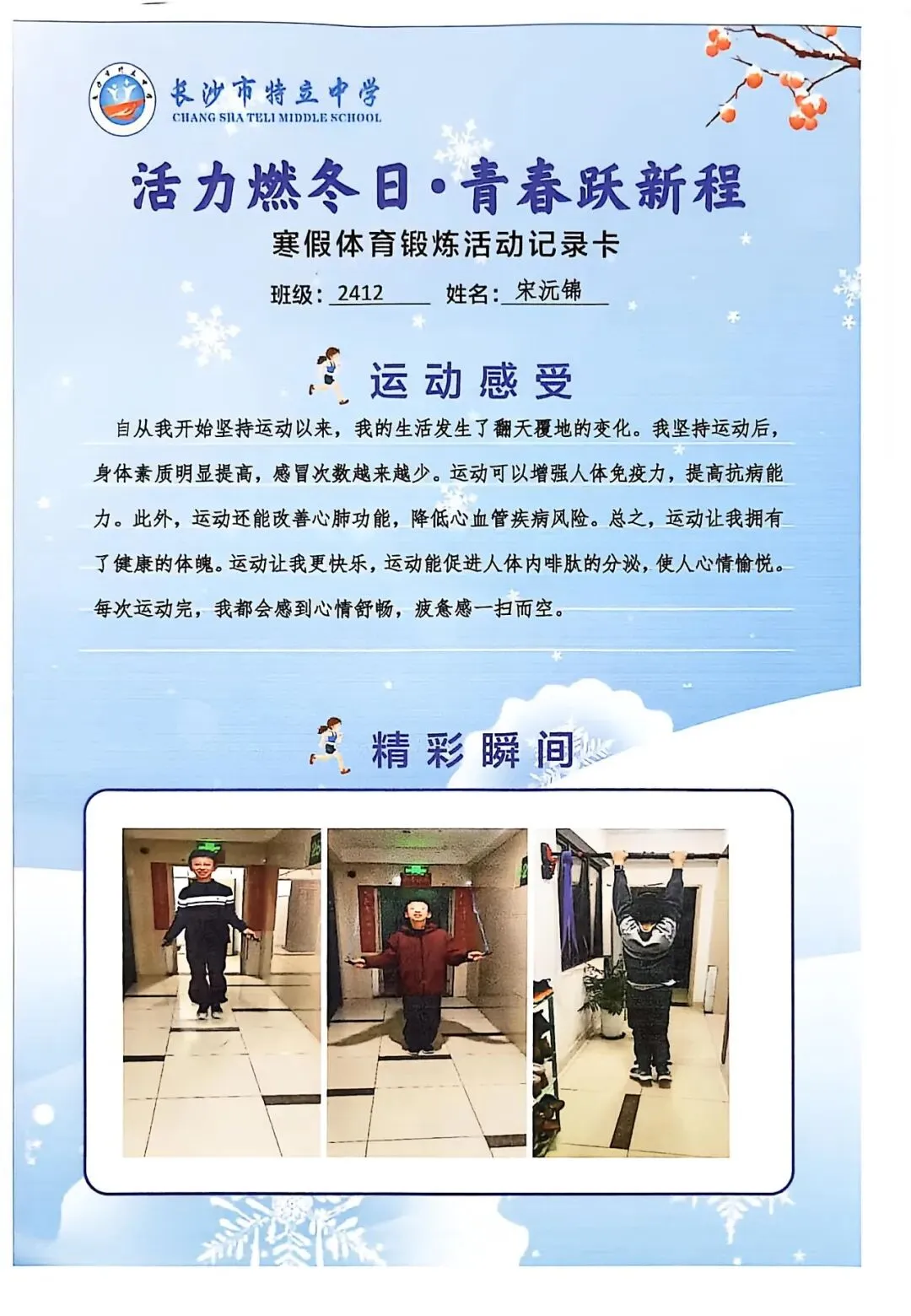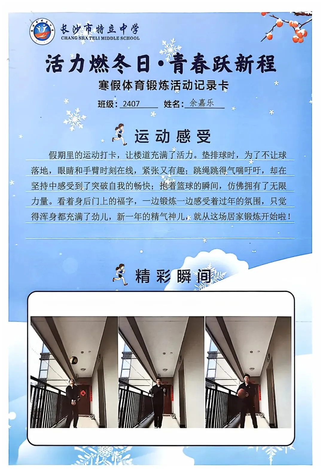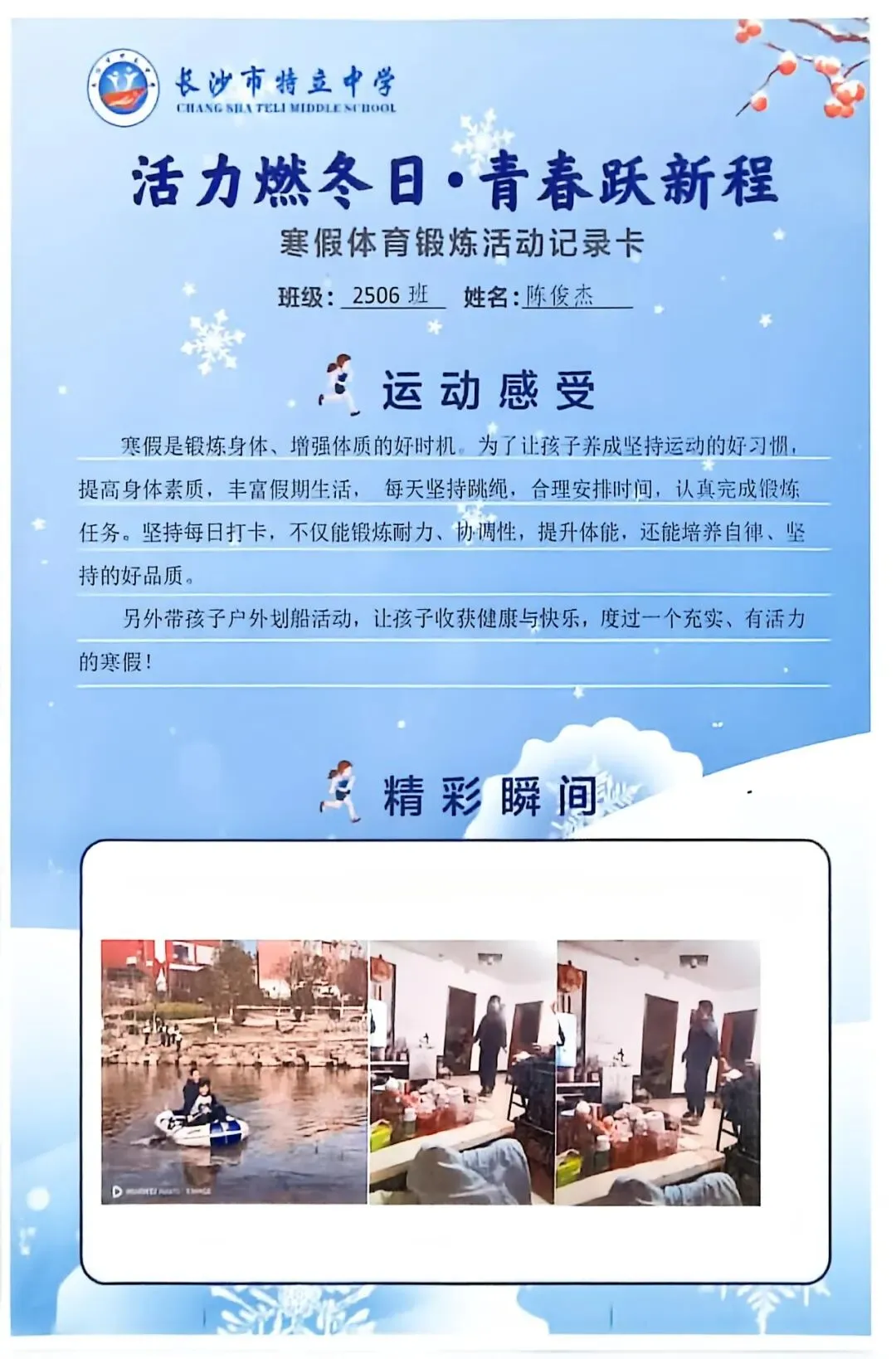 一纸实践卡,万般成长味。本次寒假实践作业展,不仅全方位展现了同学们充实而有意义的假期生活,更生动见证了大家在知行合一中的点滴进步。从文化传承到志愿服务,从动手实践到体育锻炼,特立少年们在丰富多彩的实践活动中开阔视野、锤炼品格、增长才干,真正度过了一个有温度、有深度、有活力的寒假。