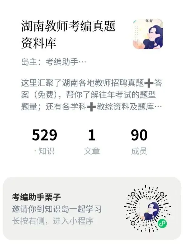 扫码查看湖南教师考编真题与资料