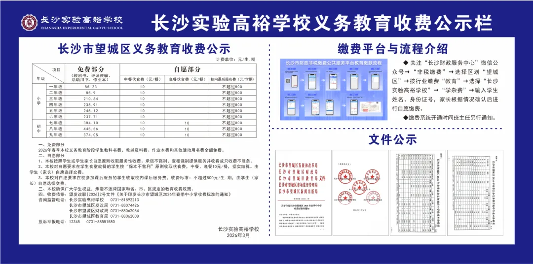 2026年春季本校义务教育阶段学生教科书费、教辅资料费、作业本费和其他活动用书费全额免费。
