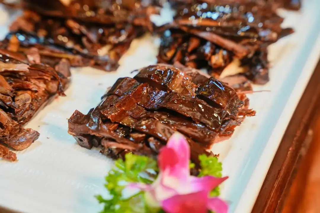 “桥驿铜鹅”全鹅宴内含:手撕鹅,酱焖鹅,清炖鹅、鹅肉饺子、酱板鹅、卤鹅拼盘、香辣鹅胗、鹅肉酱、醋溜鹅蛋等