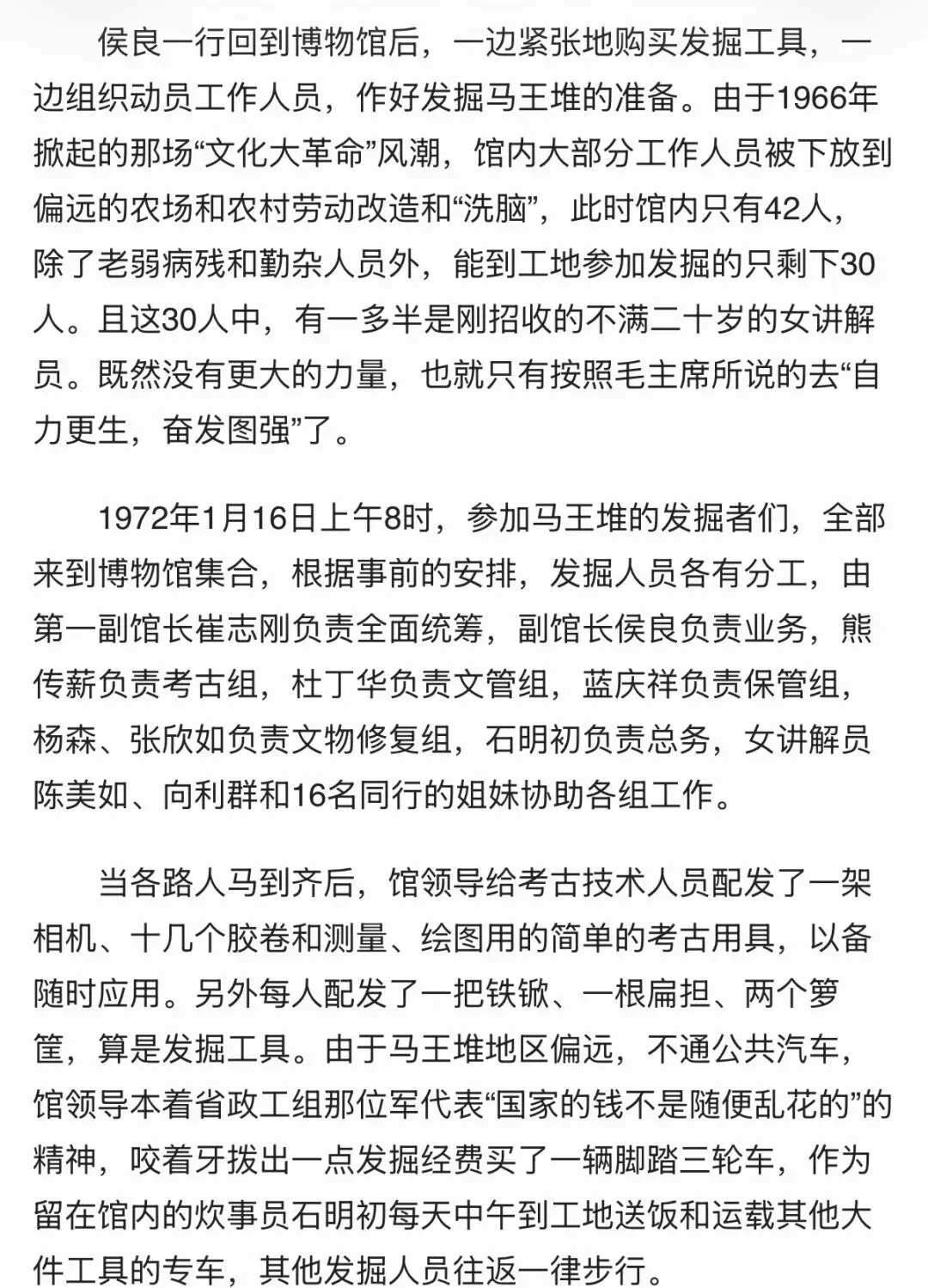 其次是交通不便。湖南省博物馆离马王堆大概有6公里的距离,当时路途已经算是很遥远。别指望有车接送,大家提着工具,连自行车都不方便骑行,何况当时自行车也并不普及。