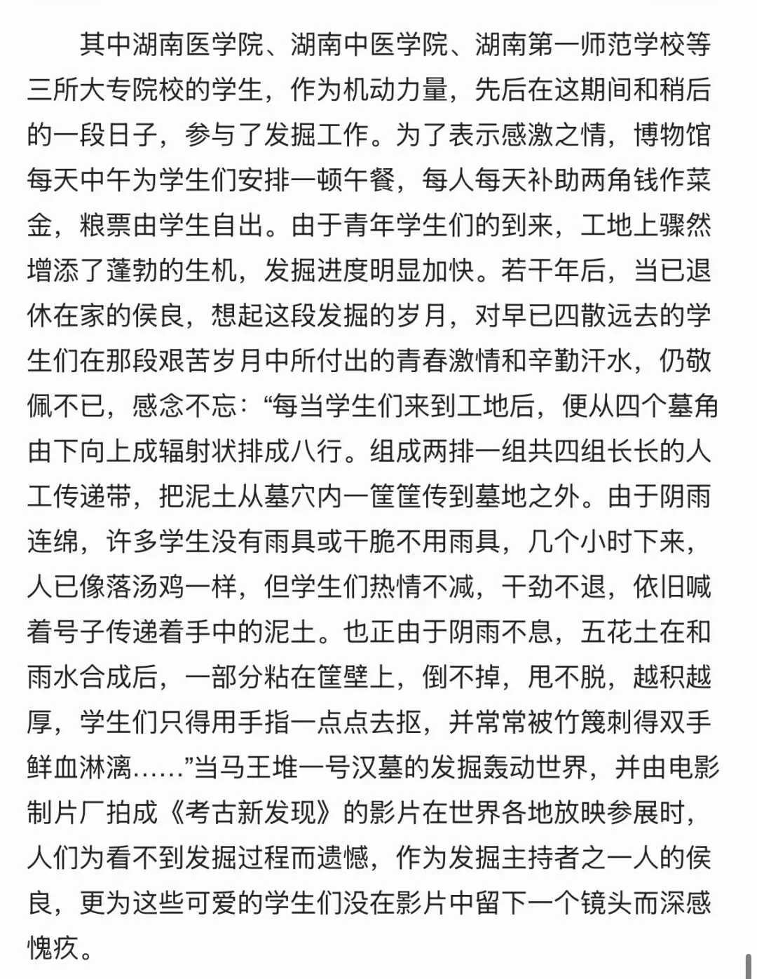 这样的场面,侯良直到晚年想起,都会感动不已。从他留下的日记中看,3所大专院校和9所中学的1500人先后参与了发掘工作,没有这些学校及其学生的支持,马王堆一号墓发掘工作可能没有办法完成。