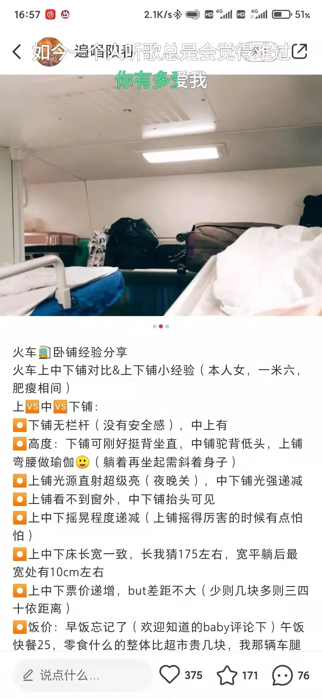 已经开始畅想在火车上能干些什么了,更有乐施好善、慷慨大方的小星,允许大家坐她的床(只是不知道需不需要换睡裤才能坐,她没明说)时间越临近,我就越幸福