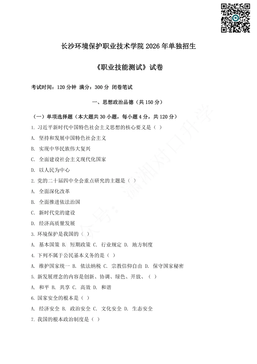 长沙商贸旅游职业技术学院单独招生考试职业技能测试(专业组七)试卷