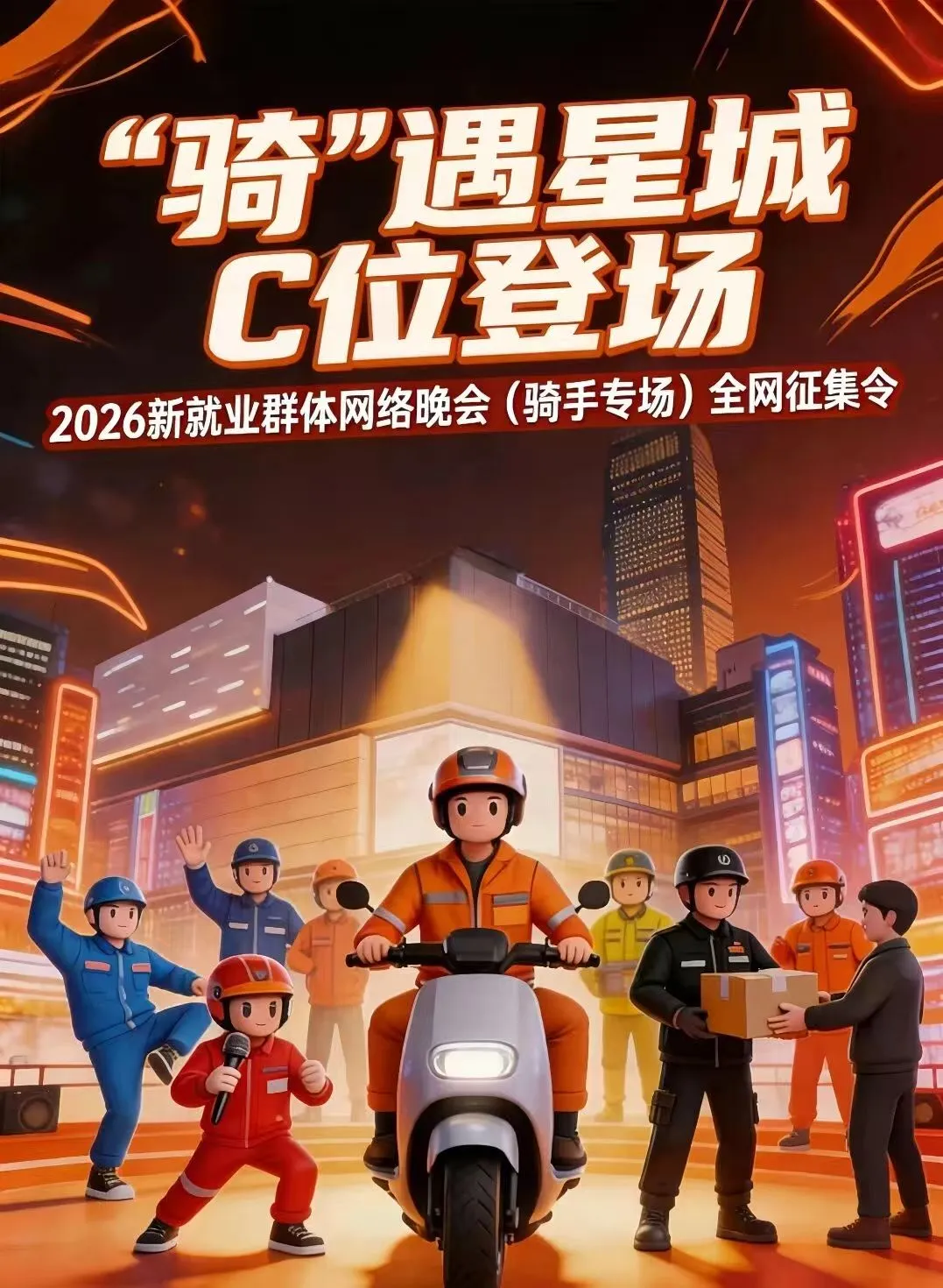 今天,长沙发布了一份特别的“征集令”。这不是寻常的招聘,而是一封面向全国外卖员、快递员、闪送员的才艺“英雄帖”,邀请他们登上“2026新就业群体网络晚会(骑手专场)”的专属舞台。