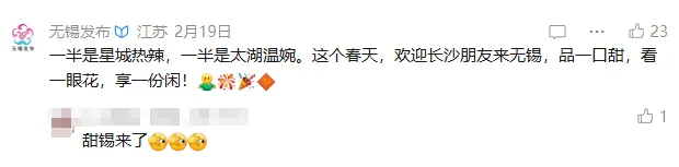 “鄂了赣饭,吃湘喝辣”“无锡的甜和长沙的辣,像极了爱情!”“成都长沙这对CP我嗑定了!”