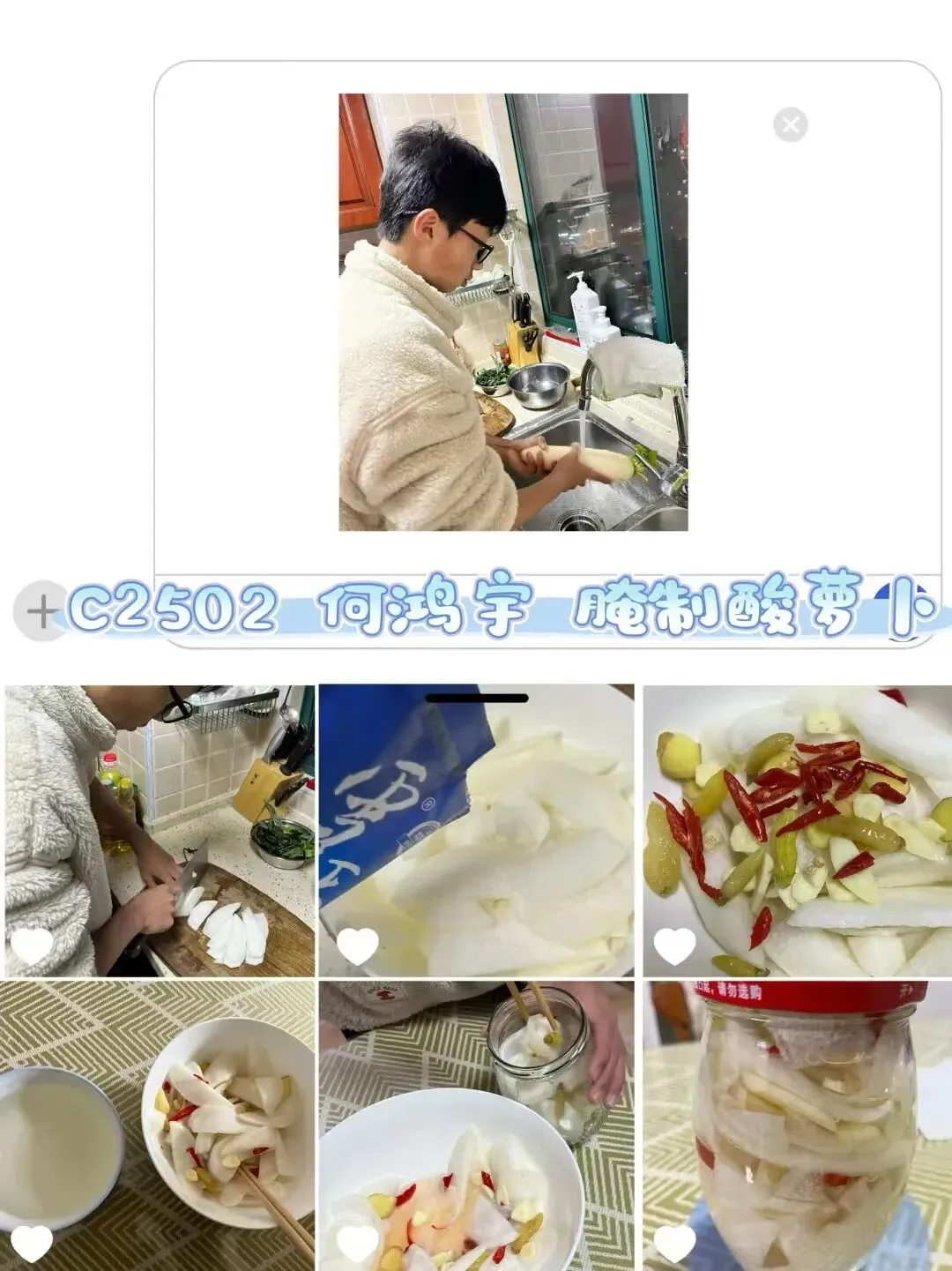 从选材、配比到发酵、等待,每一步都充满探索与耐心。同学们认真制作酸奶、米酒、泡菜、馒头等传统年味美食,严格遵循发酵原理,细心控制温度与时间,记录每一次奇妙变化。
