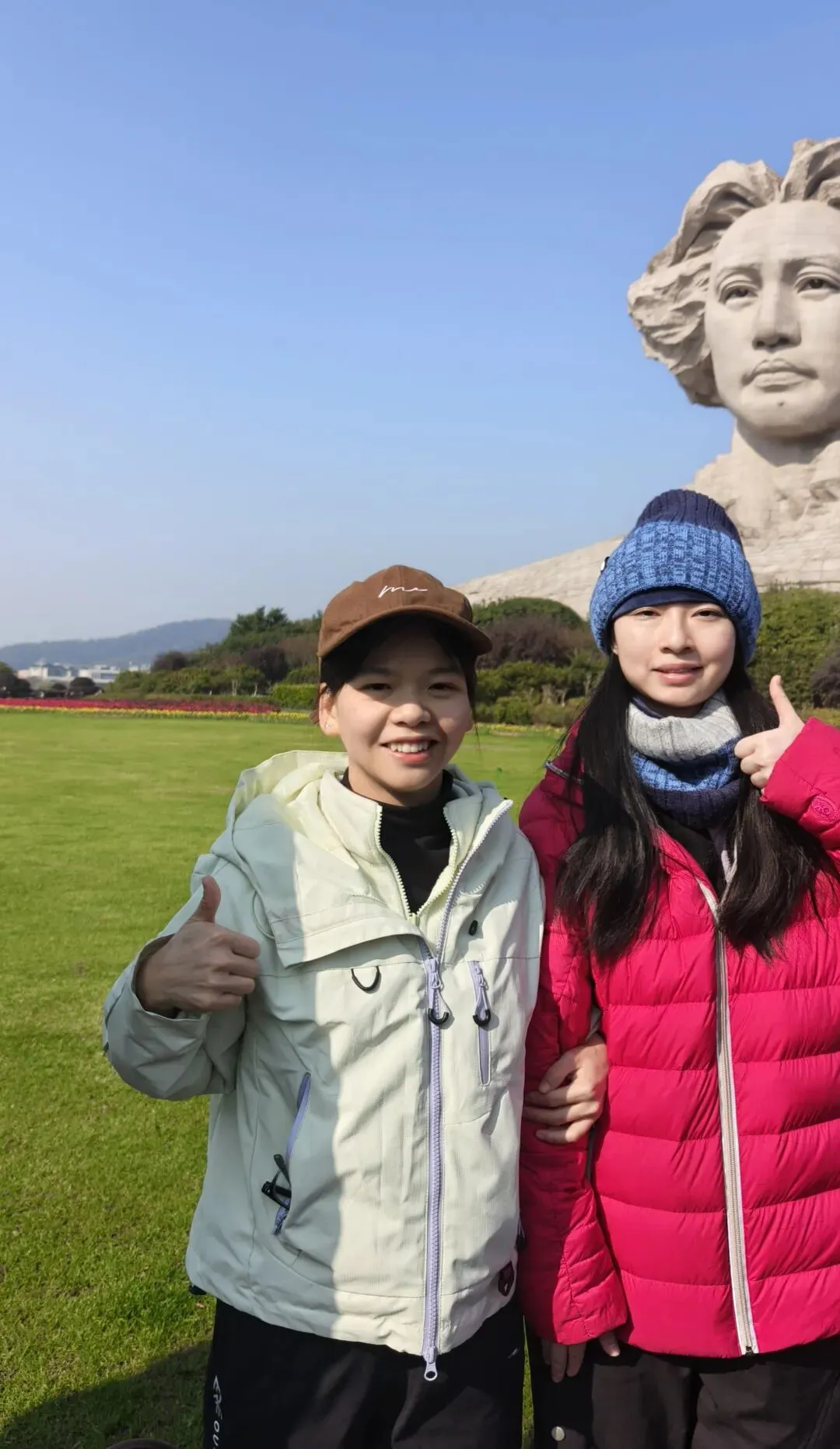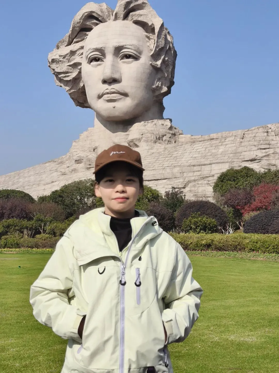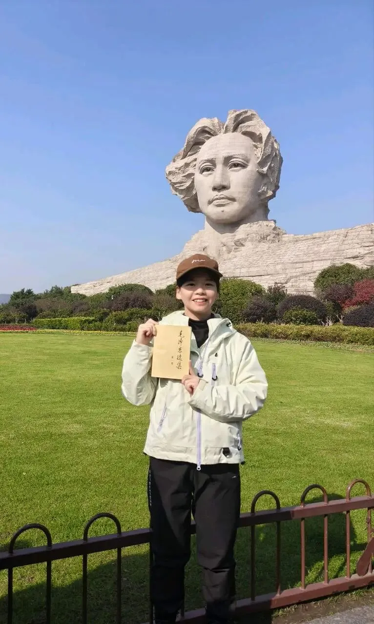 黄兴步行街(黄兴是中国近代民主革命家,中华民国的创建者之一,与孙中山并称“孙黄”,是辛亥革命时期的先驱和领袖。):逛了一晚,没发现长沙的美食,可以大餐那种。吃的是辣的土豆和鱿鱼串,最后夜宵是麦当劳还是肯德基。由于在橘子洲走了太多的路,考虑脚力有限,在岳麓山南门上了个厕所就出来了。来长沙怎能不喝茶颜悦色,排队也要在附近来一杯茶颜悦色:毛主席纪念邮票: