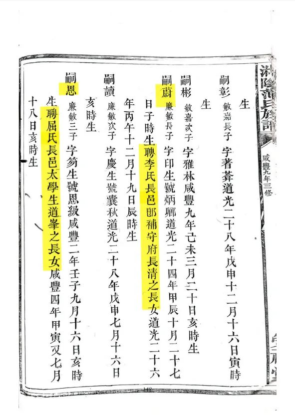 黄守愚按:依据1859年《范氏族谱》,可知范旭东的伯父范嗣蔚与湘军名将李长清之女定下娃娃亲。依据1906年《范氏家谱》,范嗣蔚“失联”了。范嗣蔚的岳父李长清,长沙县人,1859年写作“即补守府”。李长清的名字,在《曾国藩全集》里面经常出现,只是说,此李长清,是不是彼李长清,有待进一步考证。同治《长沙县志》、光绪《湖南通志》有李长清的记载,同治四年已病逝。然尚未查证长沙李氏族谱,找到范嗣蔚的岳父李长清。李姓是大姓,要找出李长清的族谱,有一点难度。有点可以确认,因康熙时期抚军赵申乔严防“歧考”,规定了善化县、长沙县的户口一经入籍,善化县人住到了长沙县,或长沙县人住到了善化县,不允许再更改为长沙县或善化县。故长沙县李氏,即使住到了善化县,仍然称作长沙县李氏。善化县李氏,即使住到了长沙县,也仍然称作善化李氏。譬如说,善化县张氏,扩张到了长沙县,就住在长沙县东乡淳化都四甲。范旭东叔祖母家就住在淳化都四甲乌溪桥,嫁到了相当于同一个村子的土地湾范家,族谱上写的是“善邑”。