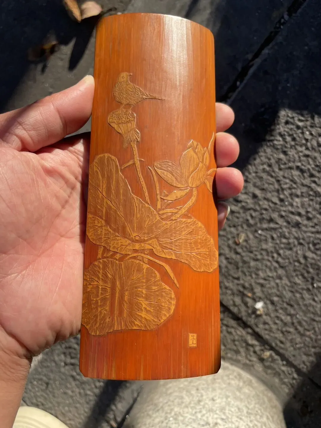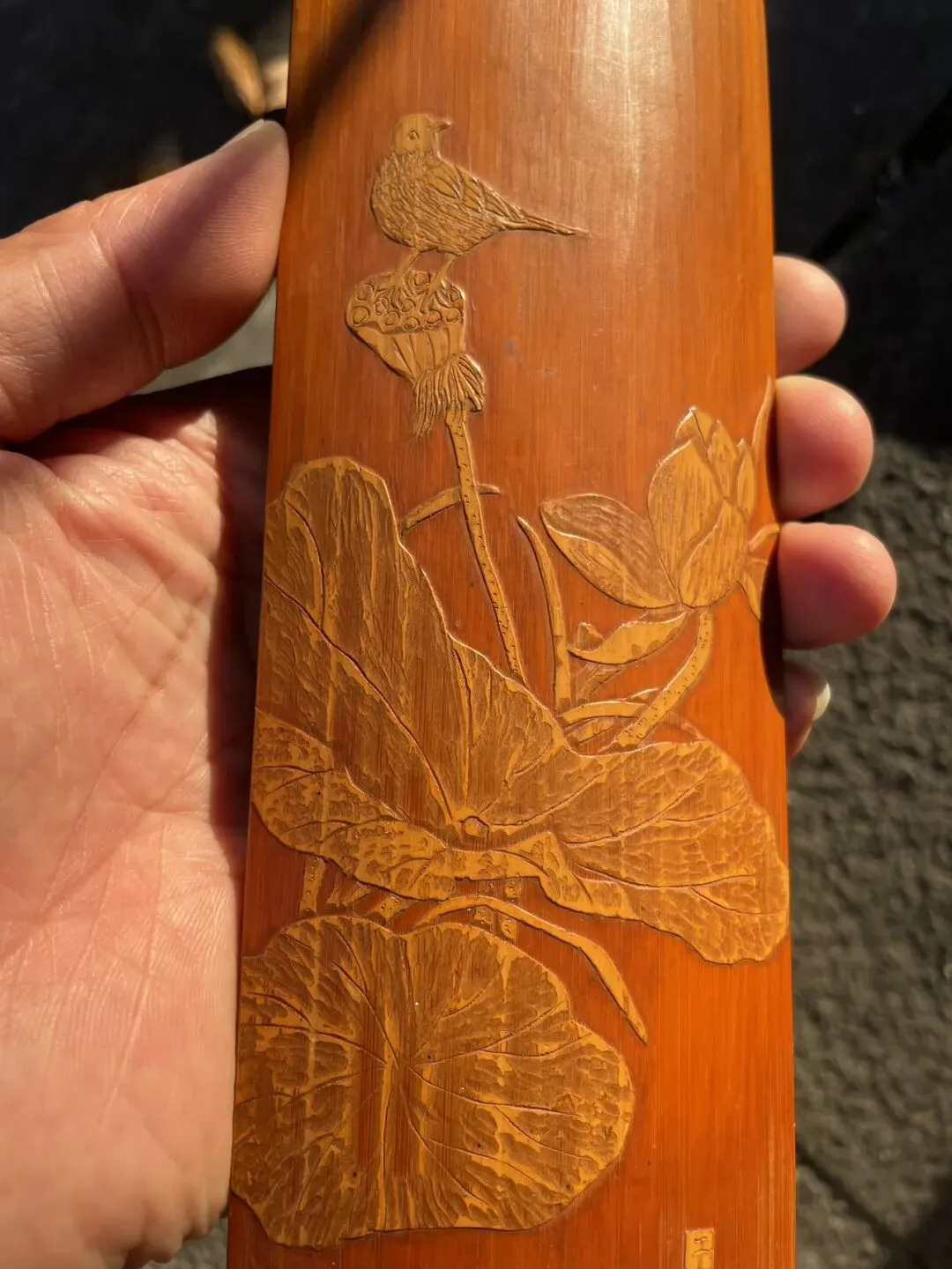 晚清去皮留青竹雕老茶则