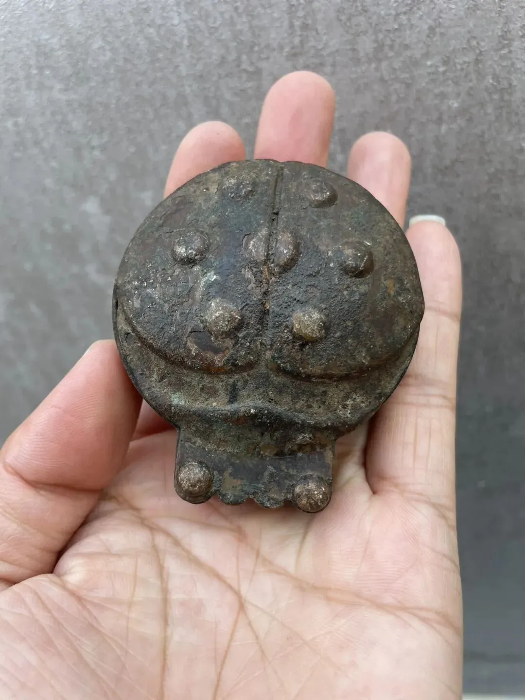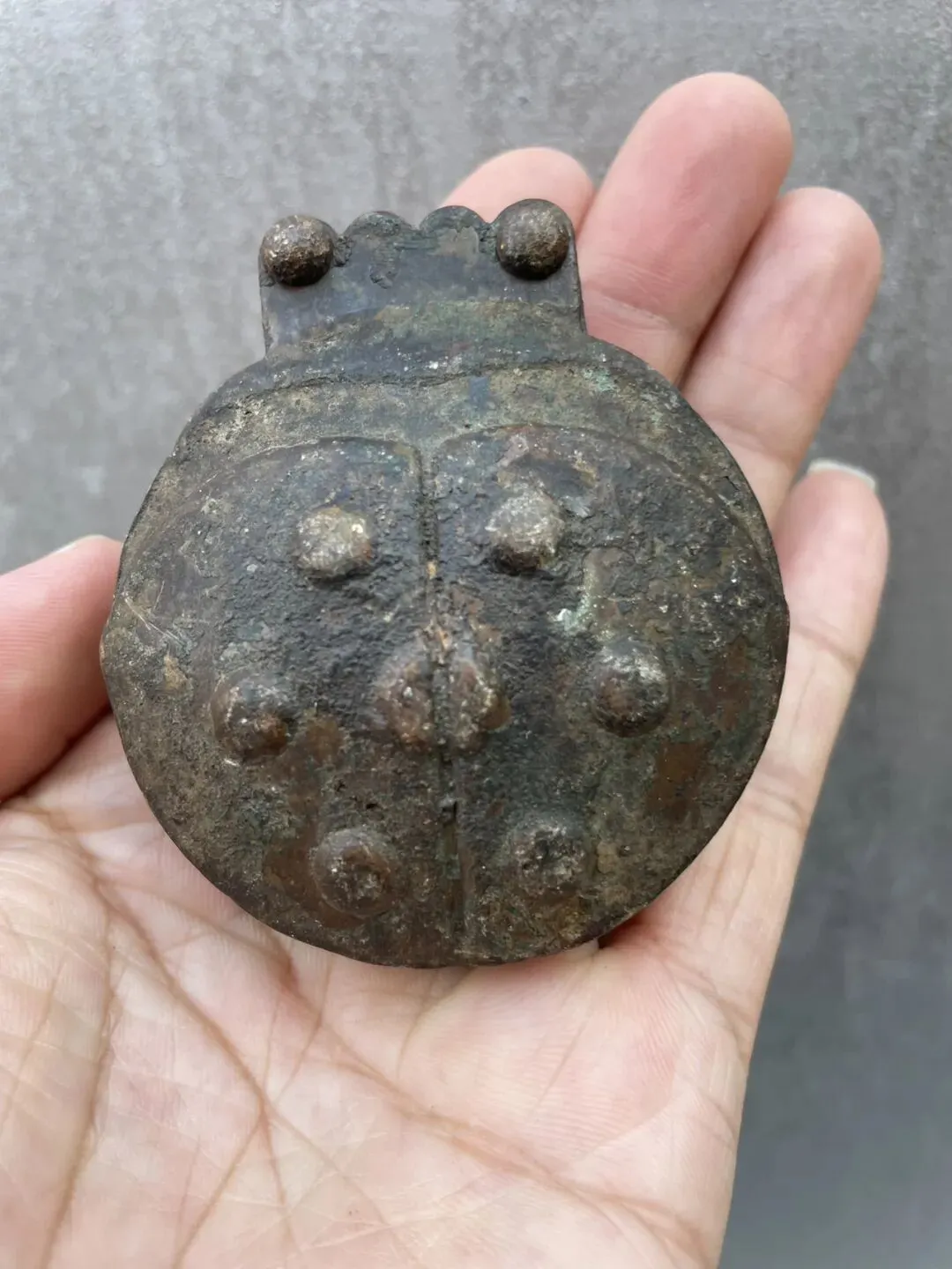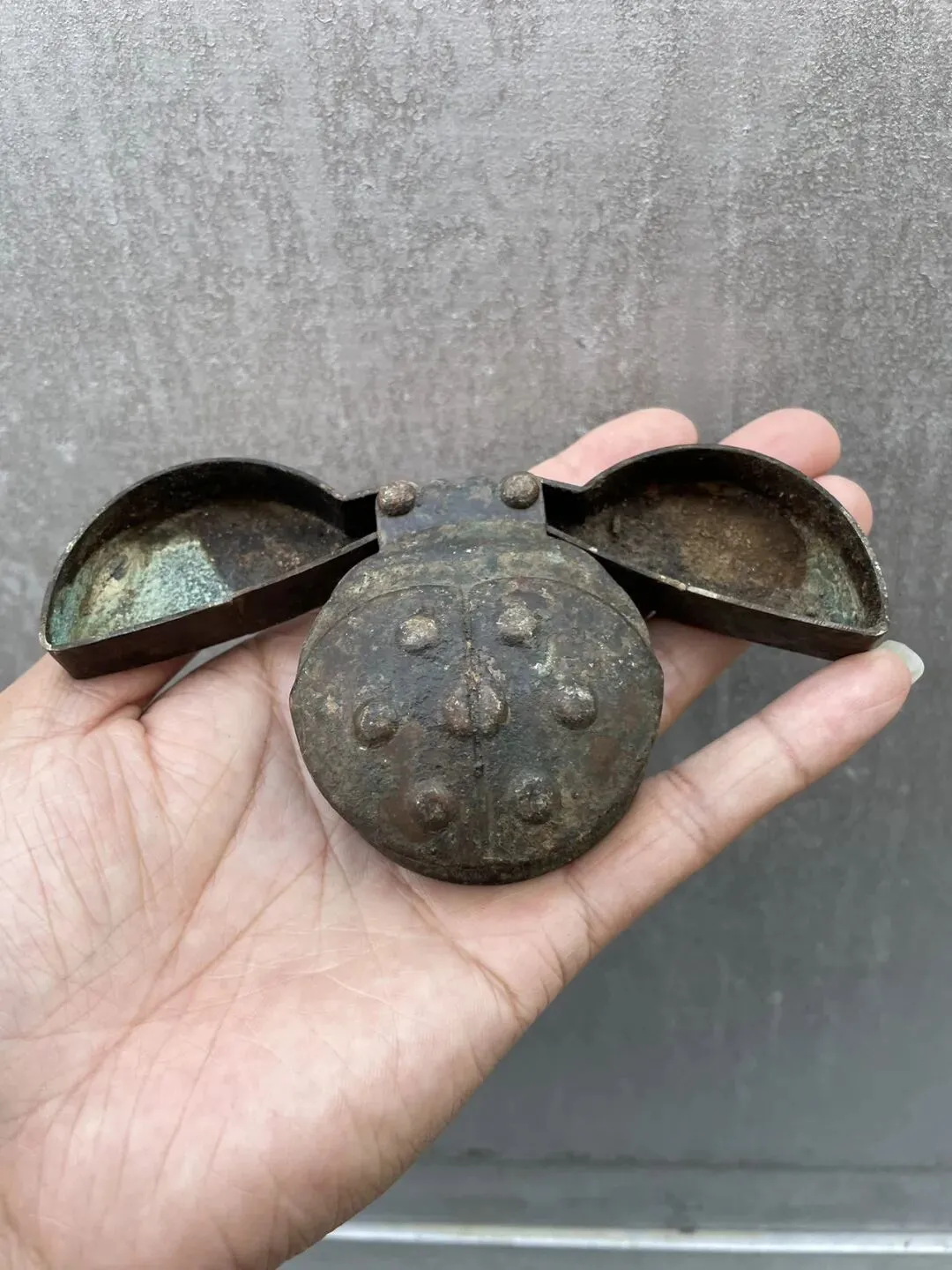清代名款“荣宝斋” 七星瓢虫造型的 铜墨盒 包浆厚重自然 造型生动有趣 很少见的一件文房用品