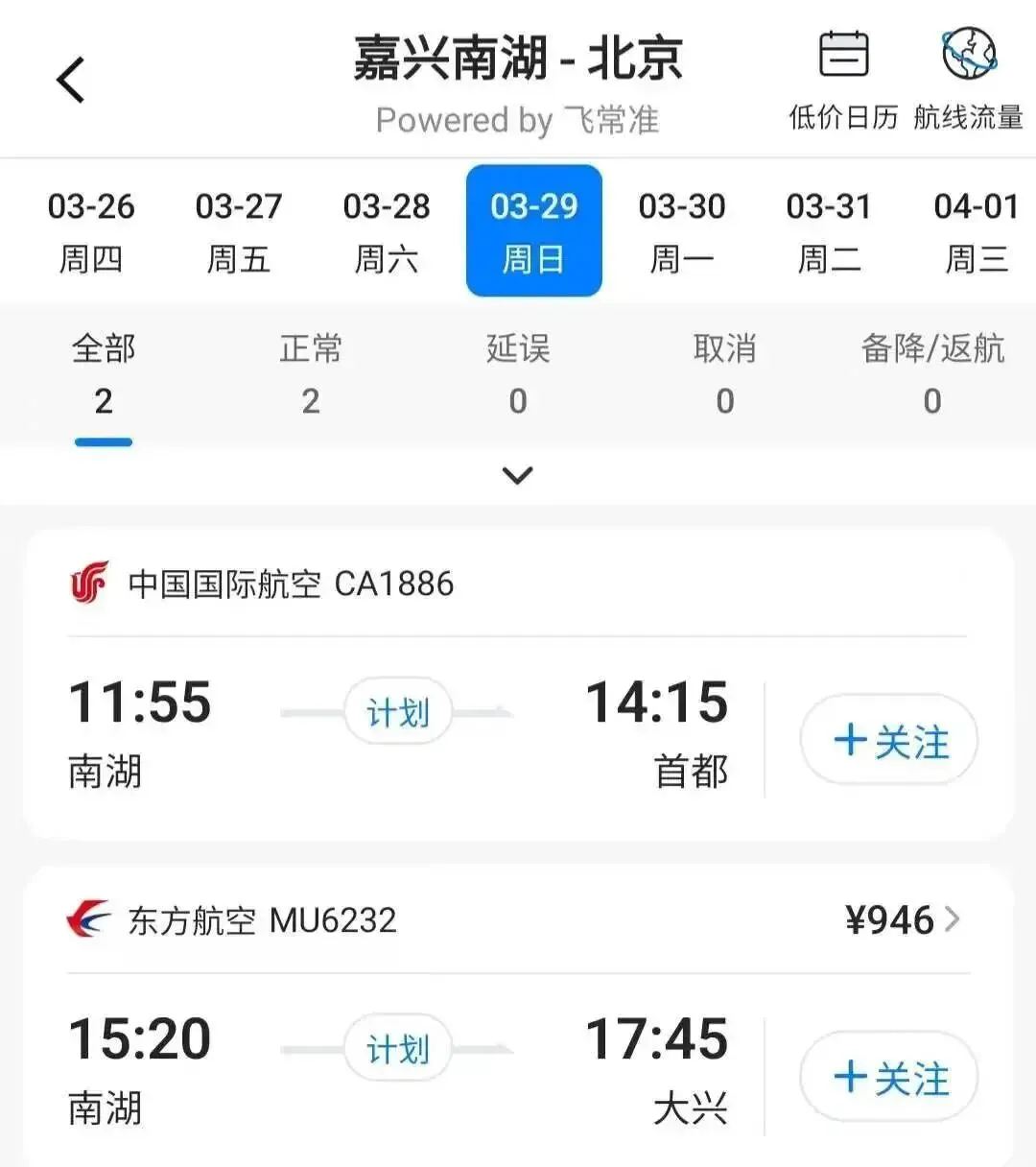 嘉兴⇌北京首都