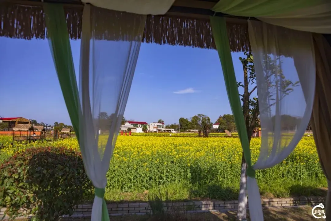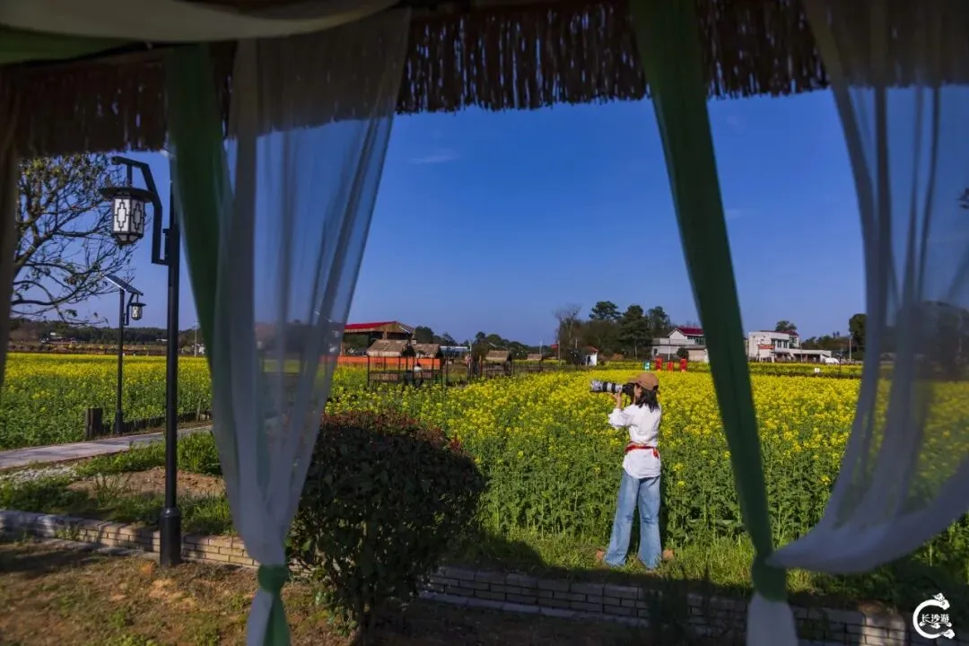 踏入花海,淡淡的花香便萦绕鼻尖,不刺鼻、不张扬,是大自然最纯粹的气息。最让人心动的,莫过于花海间那座挂着白纱帘的亭子,风一吹,白纱轻扬,裙摆般灵动飘逸,身旁的油菜花随之起伏,金浪与白纱相映,人往旁边一站,无需刻意摆拍,随手按下快门,都是自带氛围感的春日大片,温柔又出片。