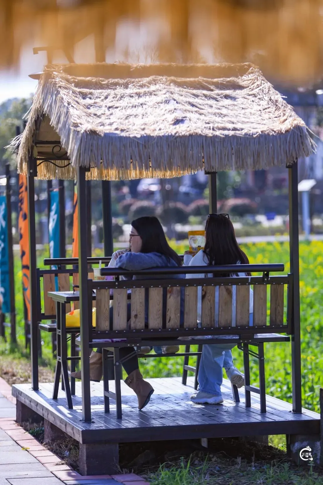 更难得的是,这里没有拥挤的人潮,游客寥寥,能让你安安静静沉浸在春日美景里。不用排队等机位,不用避开人群找角度,花田肆意盛放,亭台错落有致,目之所及皆是金黄与温柔,真正实现“花美人少”的赏花自由,每一处角落都能拍出专属你的春日大片。