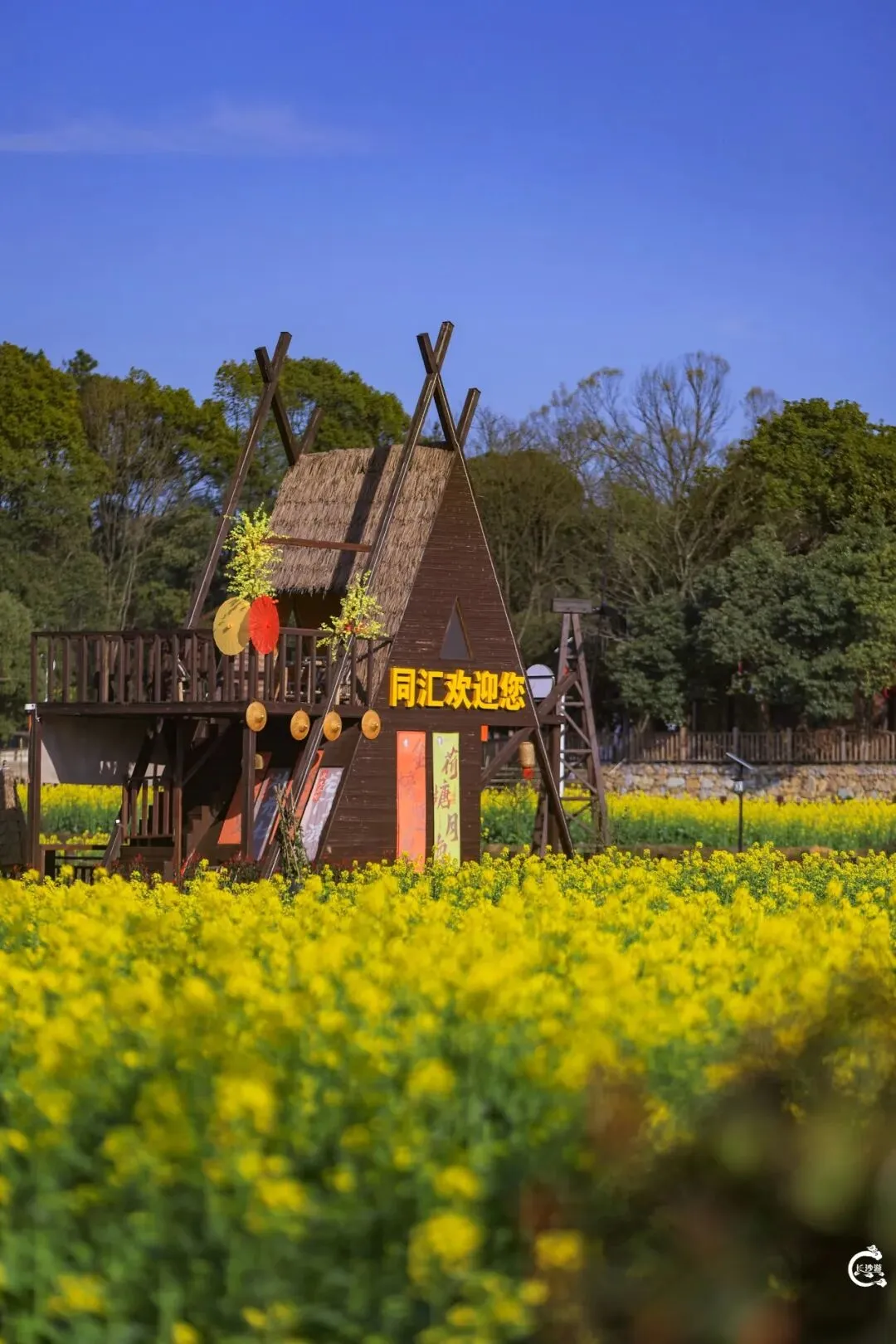 不必远赴远方,不必挤破人潮,在同汇长龙,就能赴一场与春天的约会。这里的油菜花,不似别处的零星点缀,而是铺天盖地、肆意生长,从田埂蔓延至远方,与园区的木屋、风车、游道相映成趣,随手一拍,都是自带滤镜的春日大片,承包你整个春天的朋友圈素材