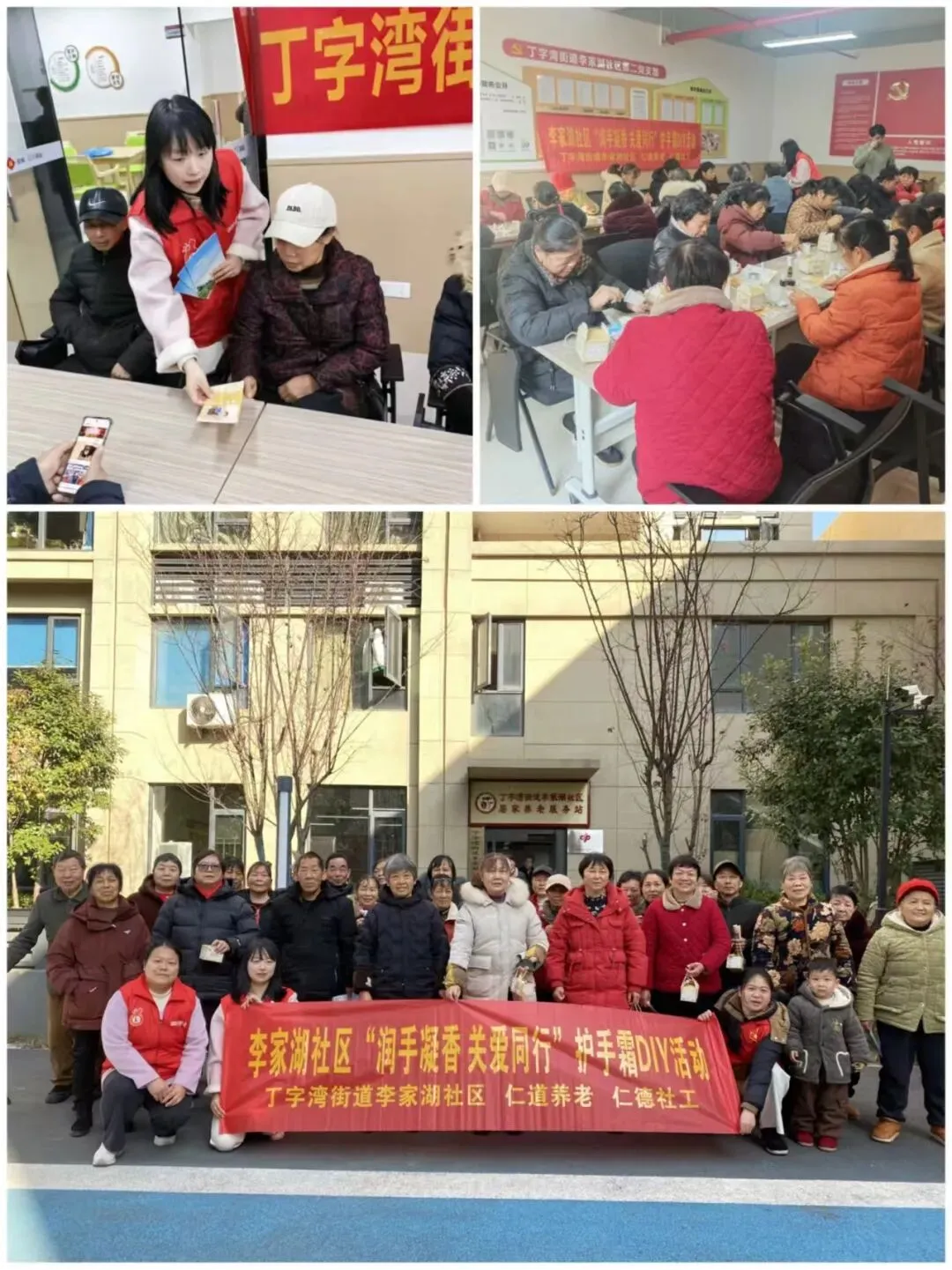1月14日上午,李家湖社区在合能湘江公馆雷锋驿站开展“润手凝香 关爱同行”护手霜DIY活动。工作人员为辖区30余名老年人讲解冬季手部护理知识,并带领制作专属天然护手霜,让老年群体感受冬日里的暖心关怀。此外,社区工作人员就医保缴费、“利剑护蕾”、防电诈、道路交通安全、居民用电用气安全、秸秆禁烧、禁毒知识普及等方面进行宣传讲解。