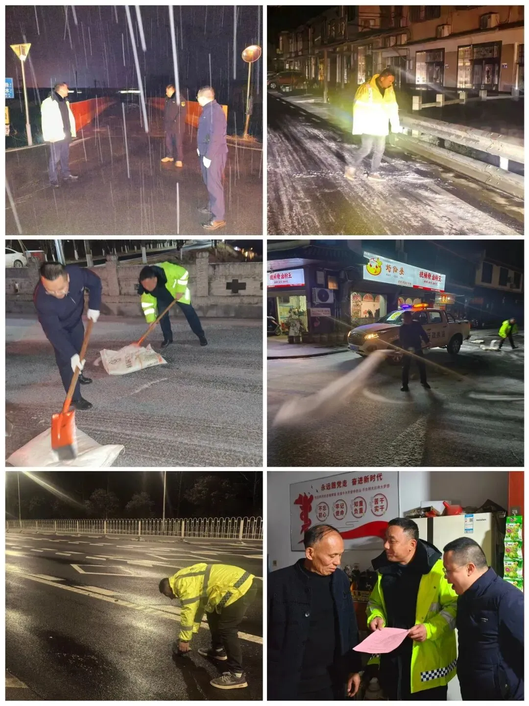1月20日晚,受降雪影响,我镇部分道路、桥梁出现结冰情况。桥驿镇迅速启动低温雨雪冰冻灾害应急响应,副镇长许鹏宇、值班组长范为国主任带领镇值班人员、镇老年协会杨洲会长连夜开展路面巡查和撒盐除冰作业,全力保障道路安全畅通。同时,许镇长和范主任带队开展“敲门行动”,深入结冰路段周边居民家中,宣传低温雨雪天气下的交通安全、用火用电安全等知识,现场排查安全隐患,提醒群众加强防范、确保安全。