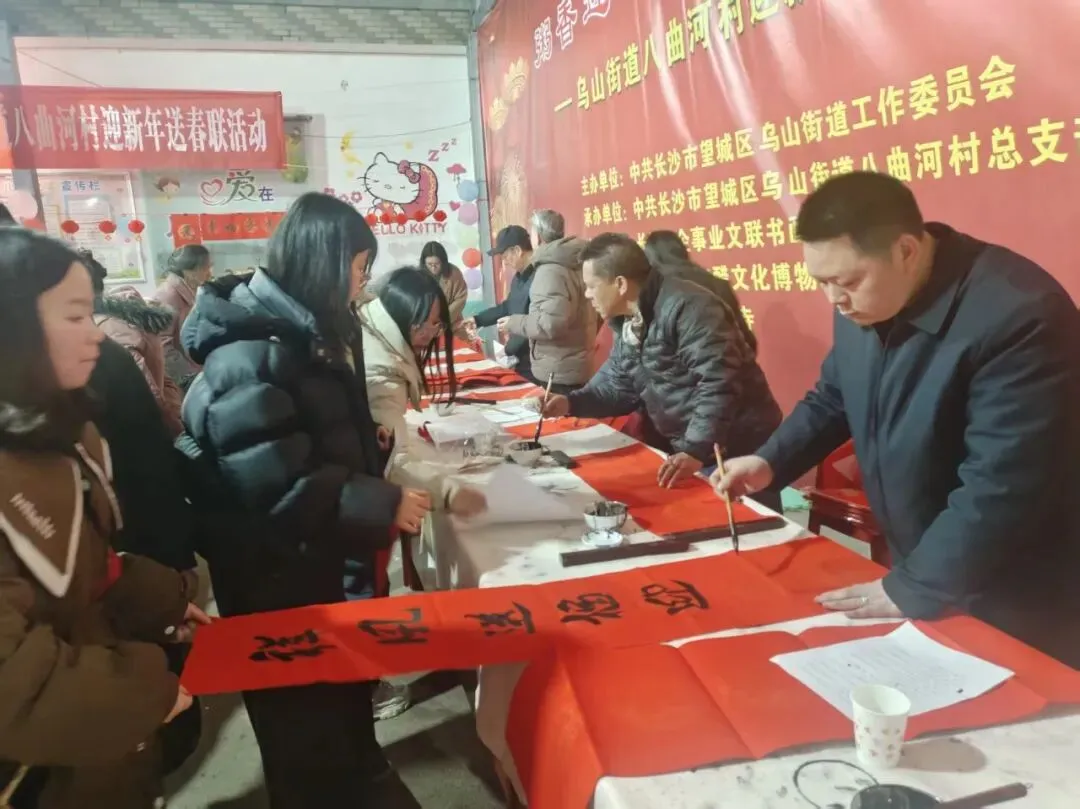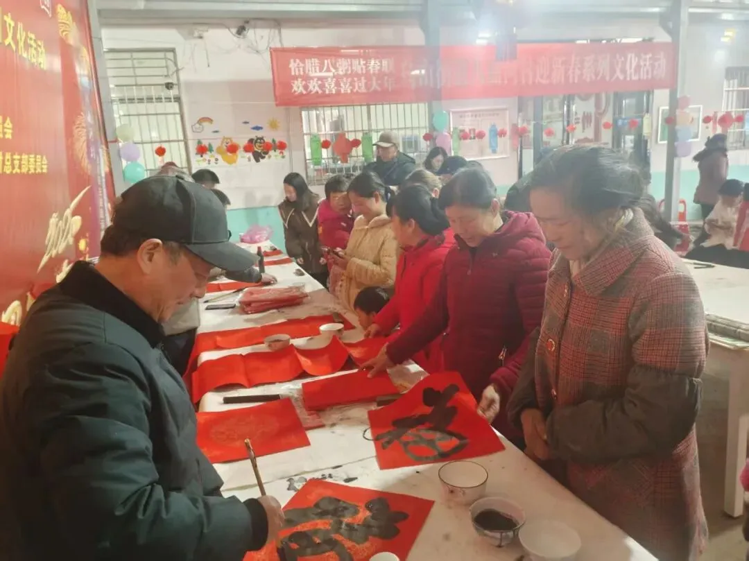 与此同时,村活动室内墨香四溢。受邀前来的书法家们挥毫泼墨,一幅幅寓意吉祥的春联和“福”字跃然纸上。闻讯赶来的村民围拢桌前,挑选心仪的联句,现场欢声笑语,暖意融融。红纸黑字间,不仅承载着新春的祝福,更营造出浓厚的节日文化氛围。