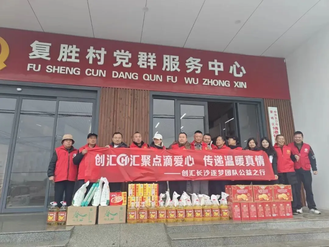 1月30日上午,细雨蒙蒙,寒风刺骨。长沙市望城区靖港镇老年协会联合镇社工站,携手创汇企业爱心公益团队,共同走进复胜村开展新春慰问活动,为 13户贫困户送去八宝粥、蛋黄派、大米、面粉、食用油等生活物资,用实际行动传递社会关爱,助力困难群众温暖过冬、幸福过节。
