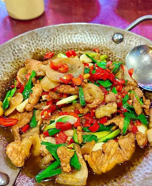 长沙完全不是这个路子,长沙人做菜用的是猛火快炒,油是工具不是目的,火才是核心,你去吃小炒肉、辣椒炒肉、干锅,会发现菜上来的时候还在滋滋响,那个锅气是实打实的,食材表面有一层焦香,但内部还保持着水分和鲜味,长沙菜的味道是脆的、直接的、爆发式的,你吃的时候不是在品味道的层次,是在感受火候和时机的精准,这种菜凉了就不好吃了,因为它的灵魂在那一瞬间的温度和火力上。
