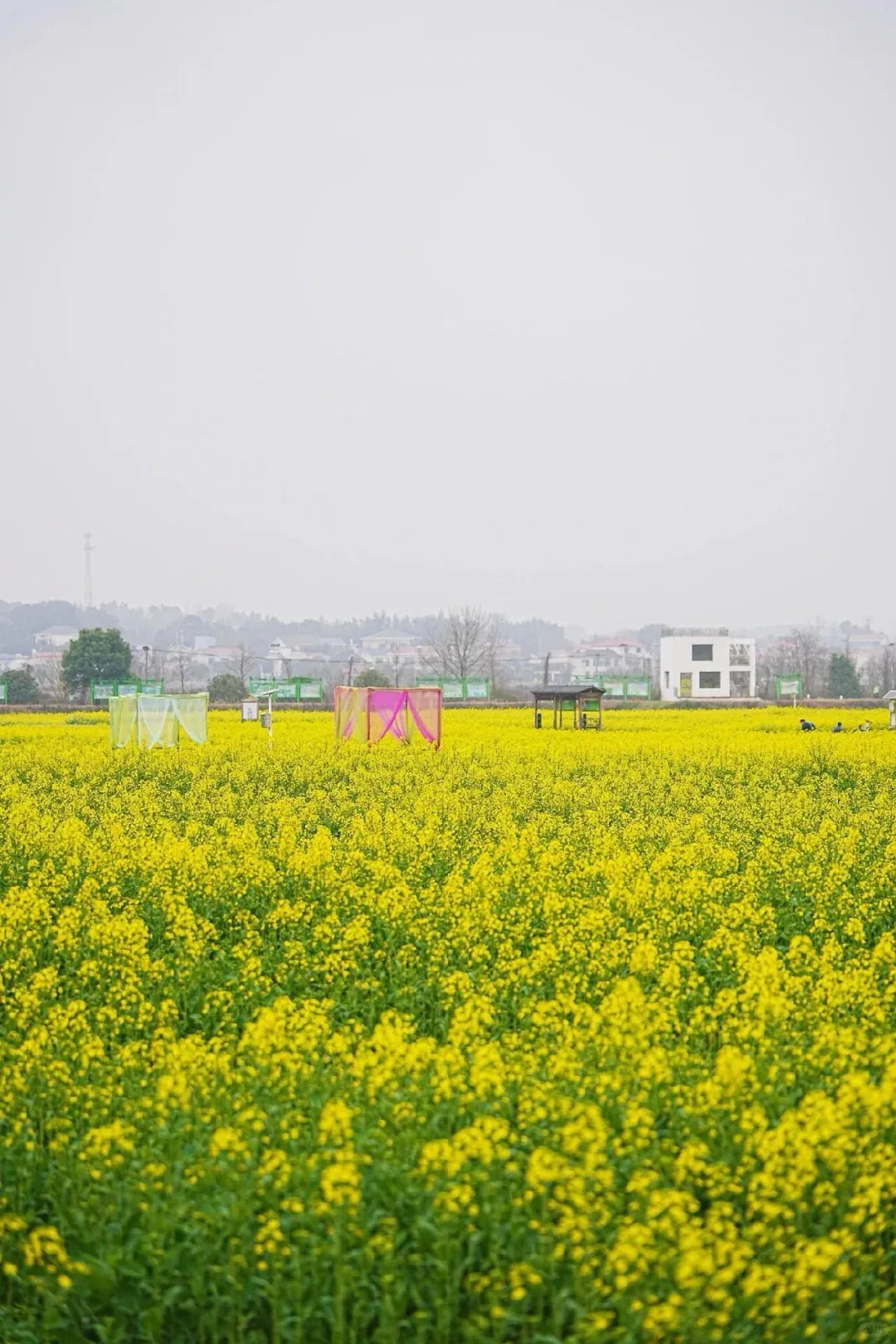 和我们印象中传统的金黄色油菜花不一样,这里的油菜花,藏着一整个春天的色彩。