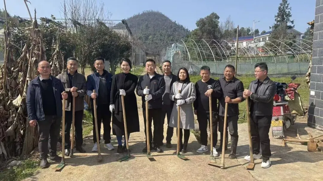 理论学习结束后,全体党员前往青天寨生态农庄开展植树实践活动,以实际行动深化作风建设、践行绿色发展理念,推动作风建设与生态保护深度融合。大家分工协作、一丝不苟,扶苗、填土、压实、浇水,每一道工序都严谨细致,认真栽种下树苗,用实干践行严实作风,让绿色理念在田间地头落地生根,让作风建设成效体现在具体实践中。