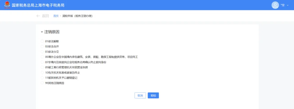 根据企业实际情况选择注销原因。
