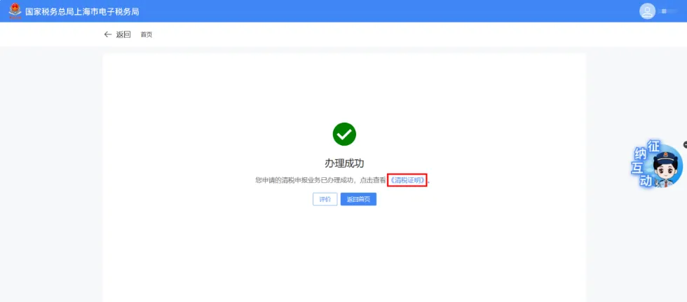 系统提示:“您申请的清税申报业务已办理成功,点击查看《清税证明》。”