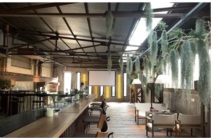 几乎每个店子都可见时间的痕迹。外墙基本保持原貌,配上朴素的招牌,内敛而有情调。厂房的桥架,和咖啡同色,点缀以灯光,绿植,深深地融入咖啡馆。老房子的红砖墙,打磨成了初时的模样,粗糙而原始配以原木座椅、书、插花、暖色灯光,温馨文艺。
