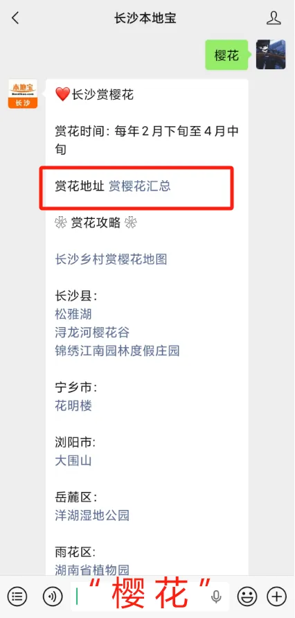 在【长沙本地宝】公众号对话框发送关键词: